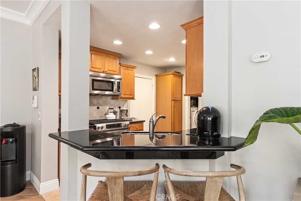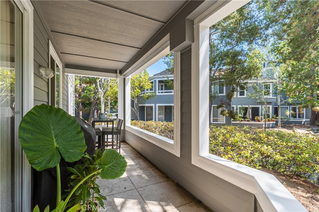 Newport Beach living at its finest in this stunning remodeled, single-story townhome in the private, gated community of Bayridge! Beauty and convenience come together in this quiet and secluded end-unit surrounded by lush landscape and just minutes away from award winning schools, Back Bay hiking/cycling trails, UCI, JW Airport, CDM beaches, and the fine dining/shopping of Balboa & Fashion Island. Enter through the living room into this bright, light open floor plan with 9’ foot ceilings, 6’ baseboards, new laminate flooring, a cozy fireplace, expansive windows and a patio door that creates a spacious and inviting atmosphere that opens to an outside covered deck in a serene setting - perfect for dining alfresco and entertaining. The remodeled gourmet kitchen is equipped with black granite counters, stainless steel appliances, rich wood cabinets, storage space, a breakfast bar and travertine floor tiling that leads into a separate indoor laundry room. Master bedroom features dual mirrored closets and an en-suite bathroom with double vanity granite counters, travertine tiling in the double sized shower. The secondary bedroom is generously sized and adjacent to the full hall bathroom. Additional features include an attached one-car garage, plus unattached additional one-car garage, new windows, new lighting and paint. Community amenities include a sparkling pool and spa that are just steps away.