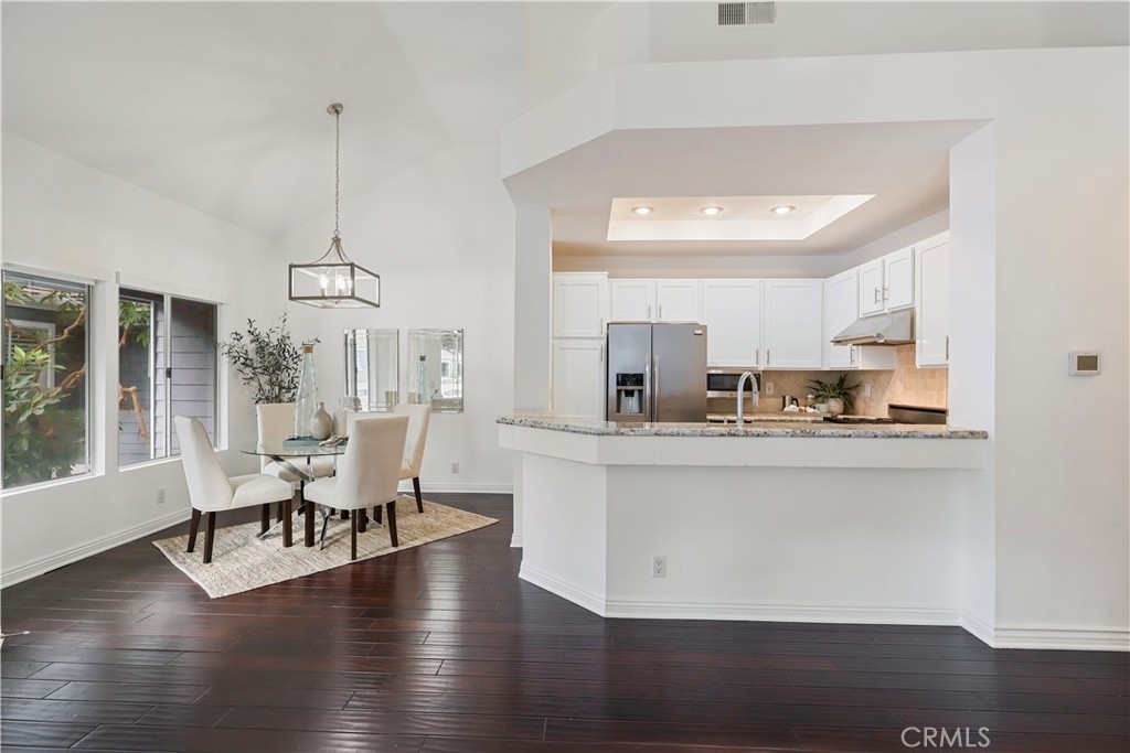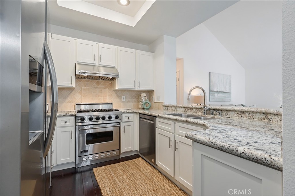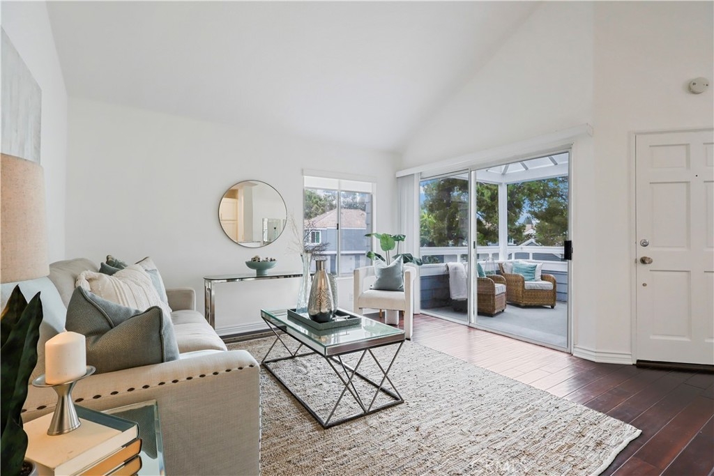 Absolutely Gorgeous Newport Beach Condo in the Luxurious Bayridge Community. One of the best locations in the neighborhood with Tree Views and plenty of privacy. The beautiful dark hardwood floors throughout welcome you home into huge great room style living. Tall vaulted ceilings extend from the gourmet kitchen to dining and family rooms. The chefs kitchen is equipped with all stainless steel appliances including commercial gas range, and wine fridge. Gorgeous granite counter tops with breakfast bar overlook the family room. Master bath has been remodeled with granite counters, designer hardware and fixtures. Huge windows throughout the home let plenty of light in and are all covered by custom wood plantation shutters. Scraped ceilings, recessed lighting, new baseboards, doors and casing throughout. Home has central AC / Heat. Inside laundry too! Outside the home you'll find a large patio. Beautiful resort style community pool and spa for swimming and sunbathing. Close to Fashion Island, Newport Center, Back Bay nature preserve, freeways and the Beach. Don't miss this one, it is turn key ready to move in. Call Bill Calhoun 714-322-2201 to enter property during open house.