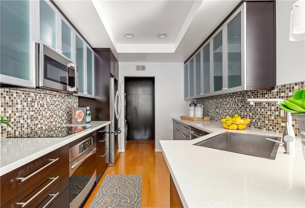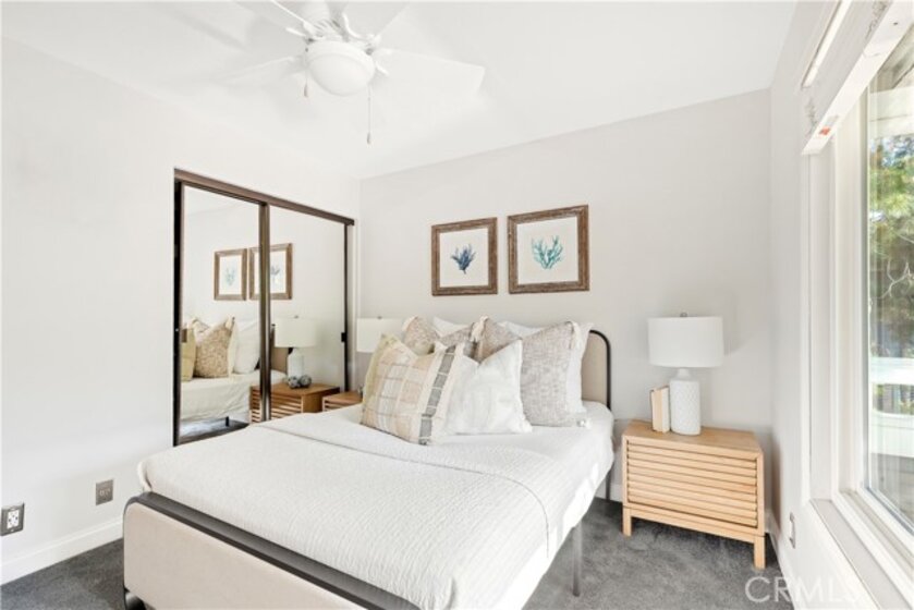 Set within the gated enclave of Bayridge, 27 Brittany offers an inviting blend of comfort and effortless Newport living, just moments from the Back Bay, Fashion Island, and some of the area’s most desirable coastal amenities. This upper-level two-bedroom, two-bath residence is filled with natural light, anchored by a spacious living room with vaulted ceilings that create an open, airy feel throughout. A charming bay window adds character and warmth, while a dedicated dining space flows seamlessly into the kitchen, ideal for everyday living or easy entertaining. The kitchen is thoughtfully designed with sleek quartz countertops, designer tile backsplash, and an eat-up counter, perfect for casual mornings or hosting friends. In-unit laundry adds everyday convenience. The primary suite serves as a peaceful retreat, featuring vaulted ceilings, ample closet space, and a tranquil en-suite bath. A secondary bedroom and full bath offer flexibility for guests, work-from-home needs, or extended stays. Step outside to a generous private deck, an ideal spot for morning coffee, outdoor dining, or grilling taking in the coastal breeze. Residents enjoy access to a large resort-style pool and spa, enhancing the relaxed, low-maintenance lifestyle for which Bayridge is known. Another highlight is the two private garages, a rare and valuable convenience in this sought-after community. Ideally located just a short walk to Back Bay Loop Trail, minutes from Fashion Island’s world-class shopping and dining, easy freeway access, and Newport Beach’s finest beaches, 27 Brittany delivers exceptional connectivity and privacy.