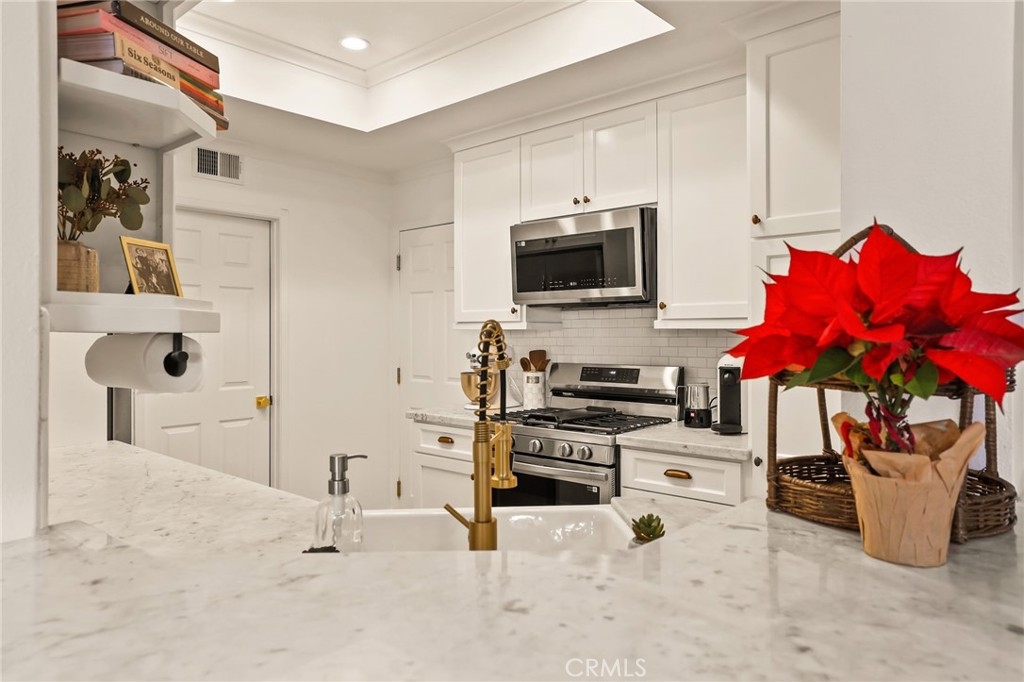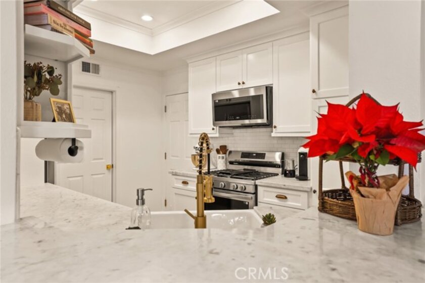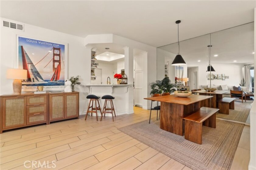 Newport Beach Remodeled Luxury Townhome located in a private, gated community just steps from the Back Bay trails. This stunning single-level, ground-floor residence features 2 bedrooms, 2 full bathrooms, and two single-car garages, including one attached garage with direct interior access. The beautifully remodeled interior offers a light-filled living and dining area with 9-foot ceilings and upgraded ceramic tile wood-style flooring throughout. The fully remodeled kitchen showcases, custom cabinetry, Carrara marble countertops, recessed lighting with under-cabinet illumination, crown molding, and new stainless-steel appliances, all included. A gas range with double ovens and a refrigerator water line provide both style and functionality. Custom dining room lighting and a wall of beveled mirrors enhance the sense of space and flow seamlessly into the family room, featuring a gas fireplace (wood-burning capable). Sliding glass doors open to a large, private patio, perfect for indoor-outdoor living. The spacious primary suite offers two walls of mirrored closets and a completely remodeled en-suite bath with dual vanities, Carrara marble countertops, a new walk-in shower, updated sinks, faucets, mirrors, and medicine cabinets. Additional highlights include an interior laundry room, a newer heating system, and a community that has recently undergone a comprehensive renovation, including new roofs, fresh exterior paint, updated landscaping, resurfaced stone walkways, and a remodeled pool and spa. Centrally located near the Back Bay, 73 Toll Road, shopping, schools, and dining, this home offers the best of Newport Beach living with direct access to one of the area’s most desirable outdoor lifestyle destinations. Come experience the Newport Beach lifestyle at its finest.