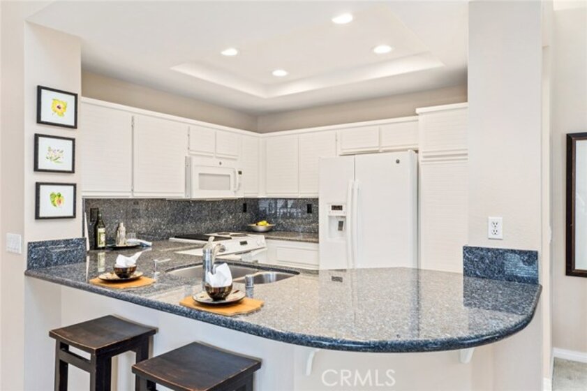 Great condo unit located in the beautiful gated community of Bayview Court. The complex has recently undergone a complete makeover from new landscaping to new roofs, new paint, new hardscape and a complete remodel in the pool and spa area. This upper unit has ocean breezes, high vaulted ceilings, 2 bedrooms, 2 baths, inside laundry and is situated towards the back corner of the complex. The kitchen has been updated with dark grey granite, white cabinets, and recessed lighting. Ceiling fans have been installed when you don’t want to use the AC unit. Included is a rare 2 car garage, which usually only comes with the 3 bedroom units in the complex. The community is in close proximity to the back bay, parks, shops and restaurants, John Wayne Airport, Fashion Island, South Coast Plaza, UCI and Newport’s finest beaches.