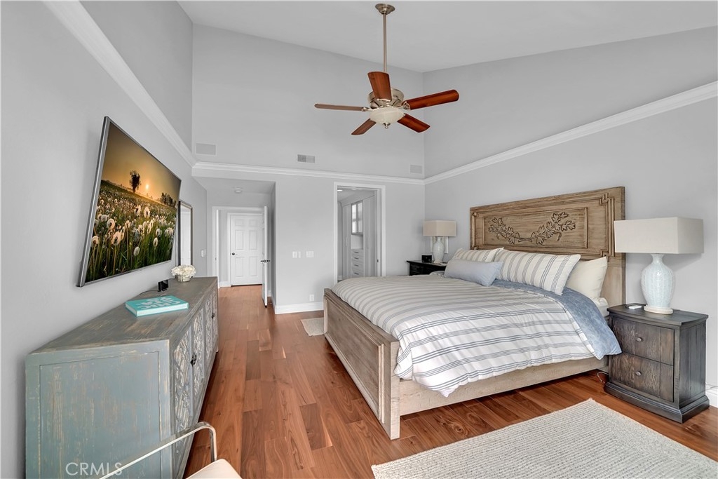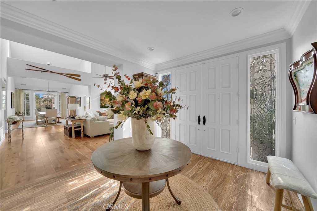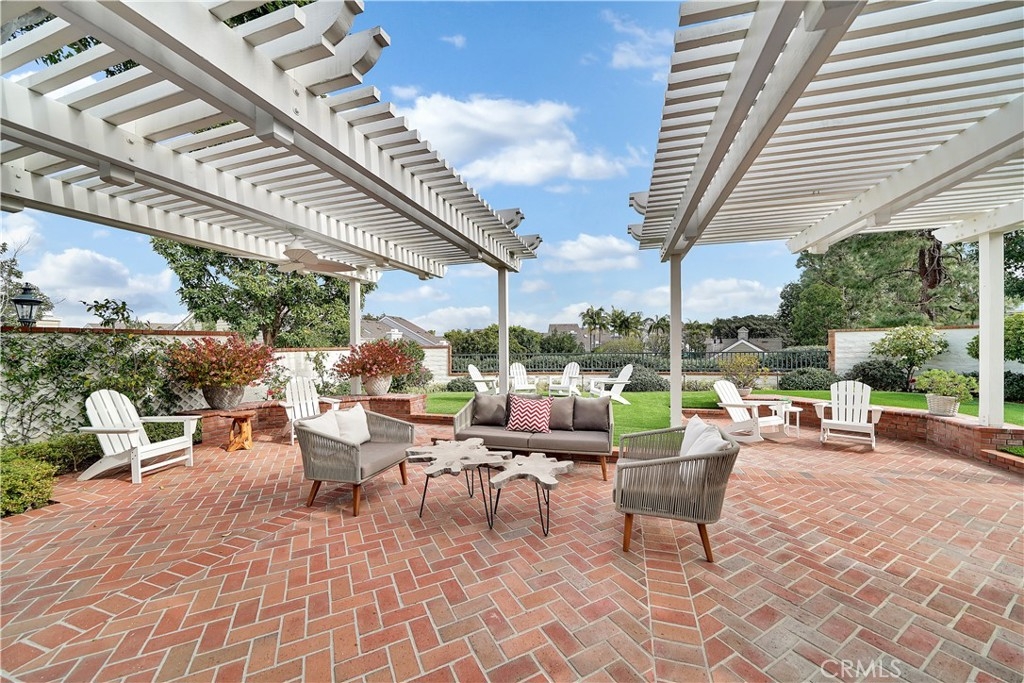Light, bright, effortlessly chic and turnkey single level home located in one of Newport Beach's most prestigious guard-gated communities. Gorgeous, remodeled interior was remodeled and thoughtfully designed to afford easy luxury and comfort. Soaring vaulted ceilings, gleaming wood floors, freshly painted interior, Sonos sound system. Open floor plan boasts a great room with fireplace, formal dining area, dry bar with Onyx countertop. Fabulous gourmet kitchen boasts top-of-the-line Thermador appliances, including a six-burner gas range and wine refrigerator. Cozy dining nook with French doors overlooks the truly spectacular, expansive backyard, with always-green turf, covered brick patio and sweeping views. The master suite is private and serene, with French doors to the backyard, automatic blackout shades, newly-installed jaw-dropping closet system, and a fabulous master bath. Two additional bedrooms, plus a separate office. Attached two-car garage with epoxy flooring and storage. Belcourt Terrace amenities include double guard gates, community pool and spa, barbecues, clubhouse and maintenance. Welcome home!