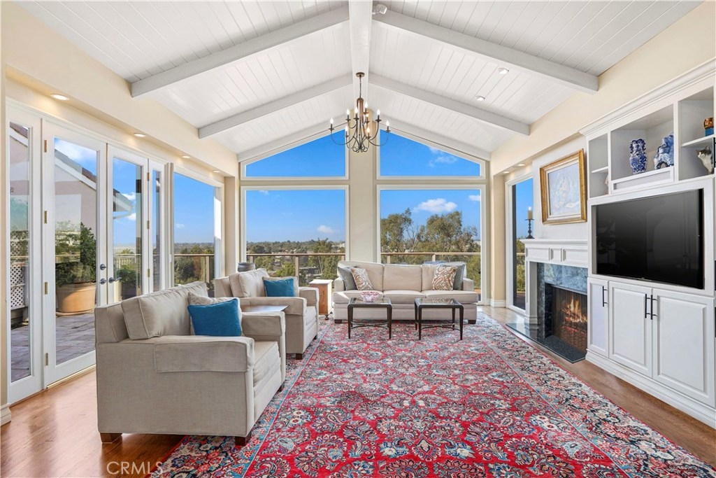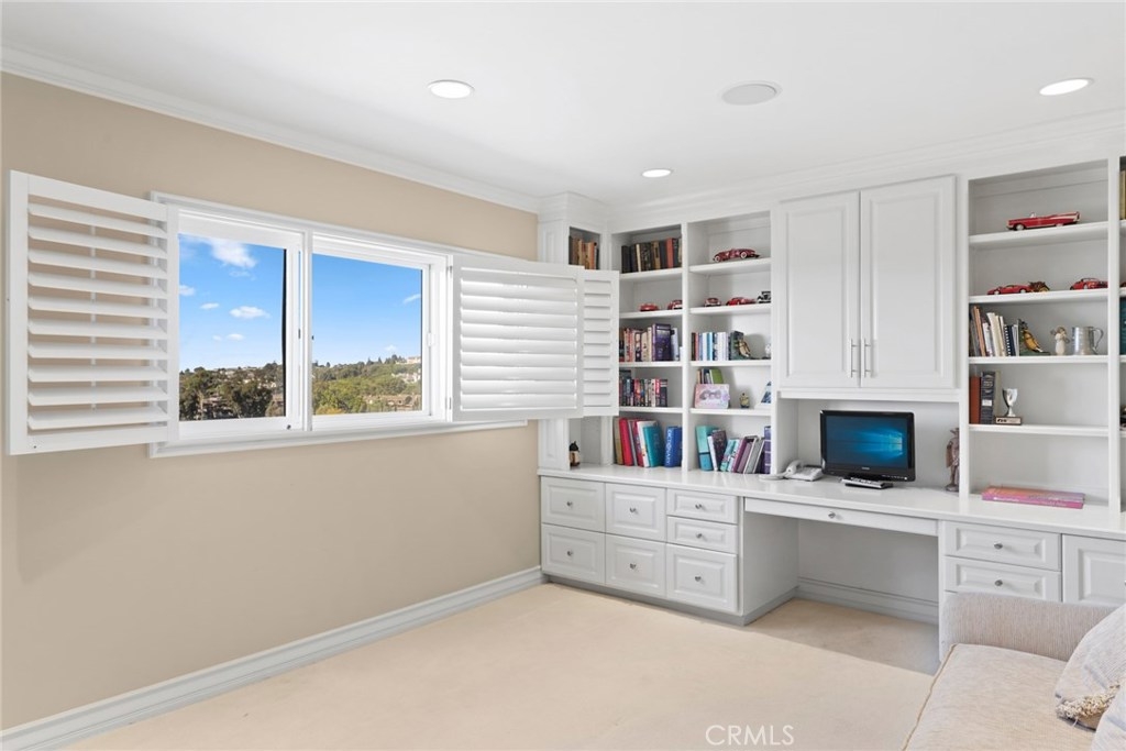 Perched above the emerald fairways of Big Canyon Country Club golf course, 23 Rue Cannes boasts a rarely offered elevation and dramatic view orientation. This updated and impeccably maintained Monaco floor plan includes 3,011 square feet of luxury living space, three bedrooms, an office, two and one half bathrooms, and a private wrap around viewing deck.Upon entry, the spectacular sun drenched great room with floor to ceiling windows frame the views of the San Gabriel mountains, Disneyland fireworks, and three golf holes. The main-level master suite allows for single level living and features a spa inspired bathroom, walk-in closet, and direct access to a secluded section of the view deck. The sleek gourmet kitchen is appointed with granite countertops, tiled backsplash, and top-of-the-line stainless steel appliances. Retreat upstairs and find a finished library, two secondary bedrooms, and one bathroom wonderfully appointed for children and guests alike. Ideally located in the guard gated community of Big Canyon Dean and within walking distance to Fashion Island and a short drive to Newport’s best shopping, restaurants, and beaches. Don’t miss your opportunity to secure this timeless piece of property