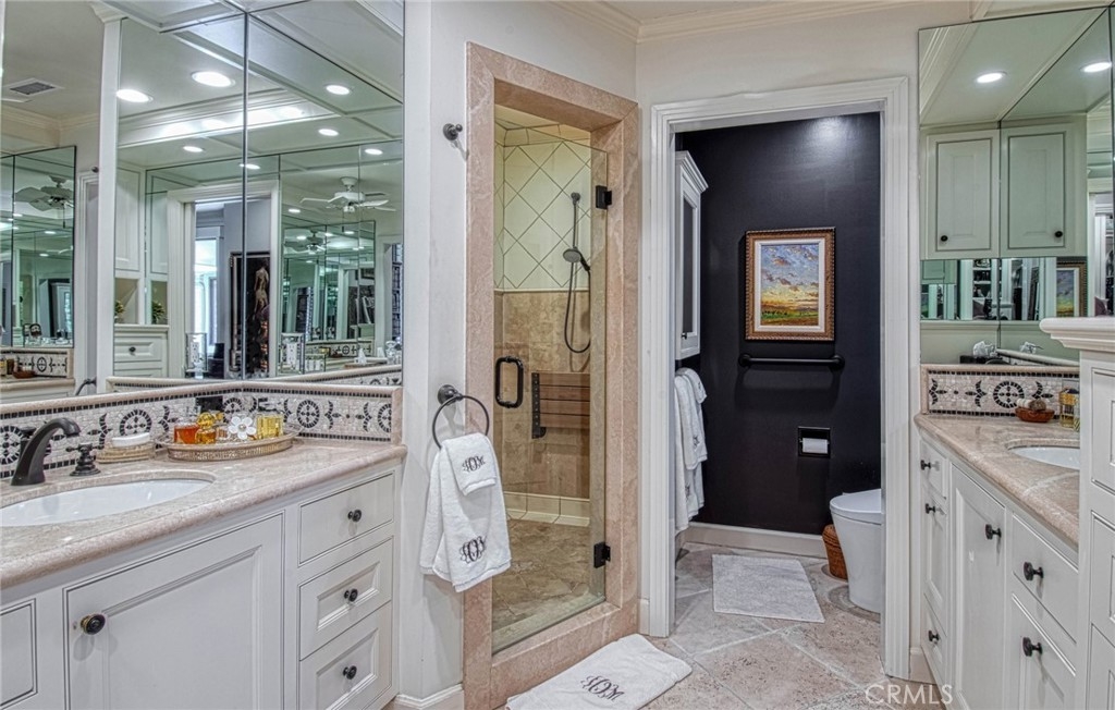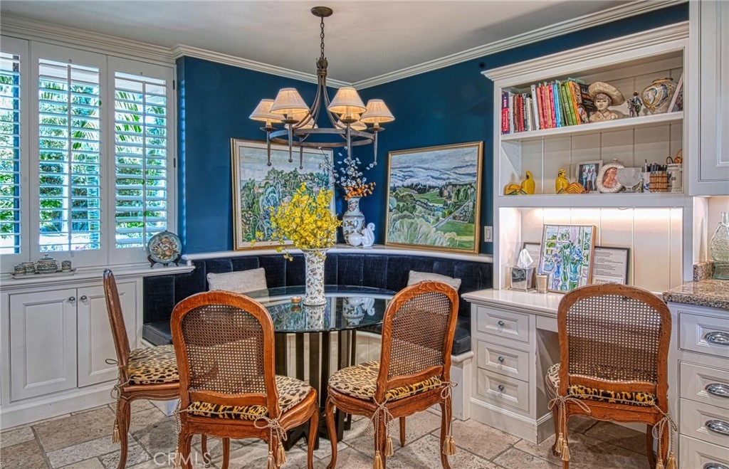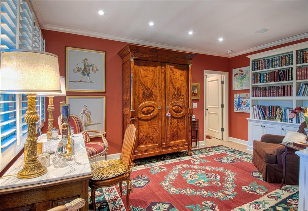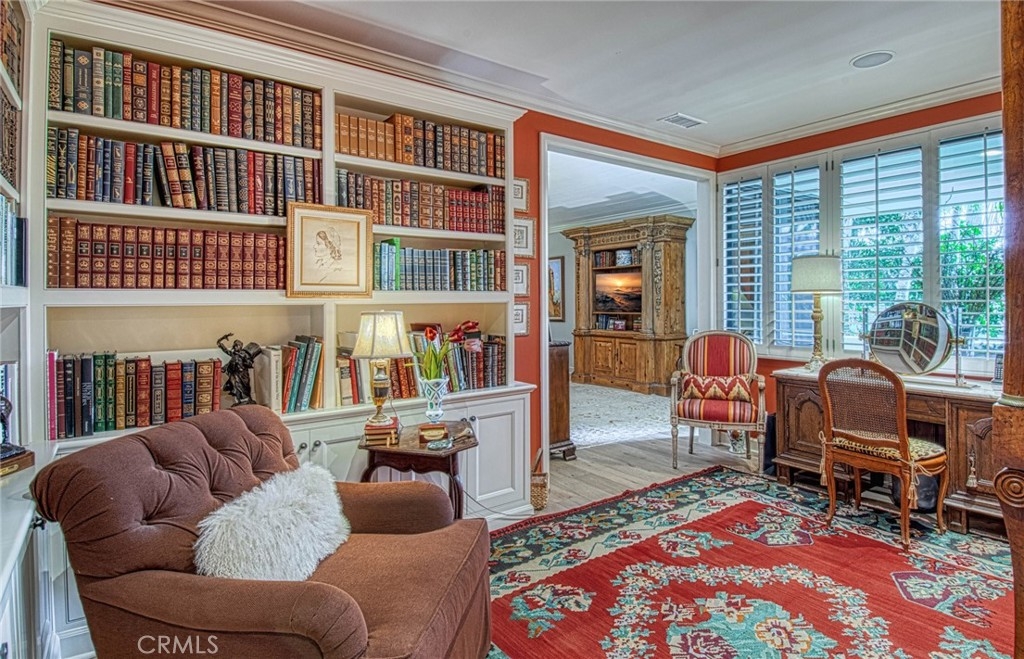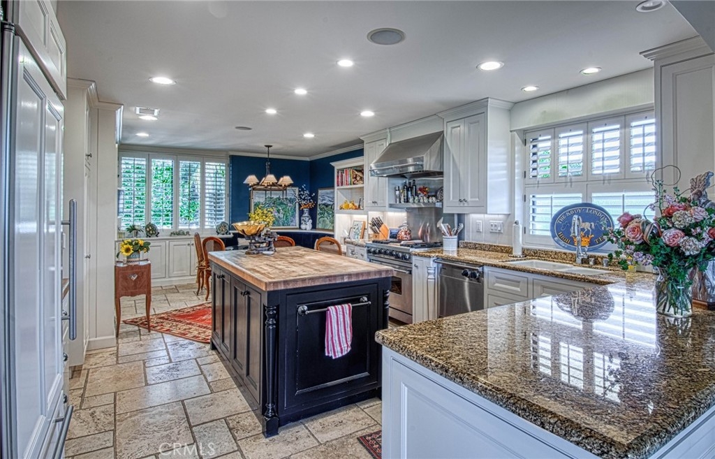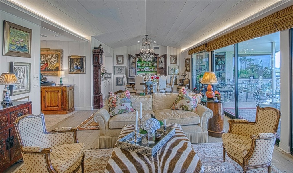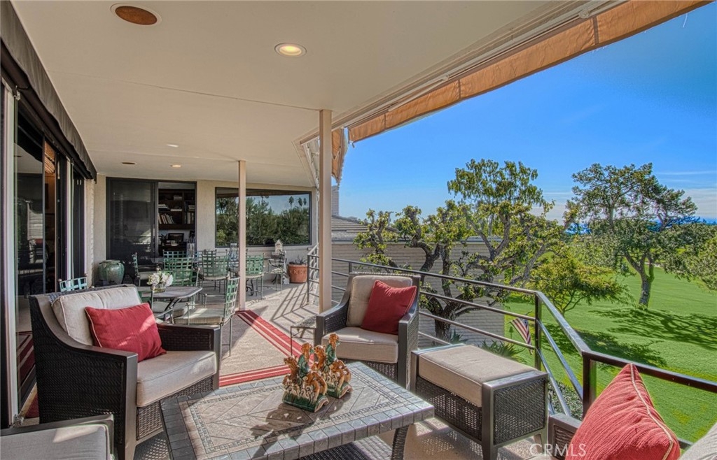 Ideally situated within the exclusive confines of the private guard-gated community of Granville, this corner unit stands out as one of the most distinctive residences within the neighborhood. Ascending to the upper-level abode, one is immediately enveloped in a grand sense of space, accentuated by vaulted ceilings and expansive floor-to-ceiling windows that grace the living and dining areas. These windows unveil a vast deck, offering sweeping panoramic views of the Newport Beach Country Club's picturesque 9th fairway. Adjacent to this outdoor haven is a separate, permitted space, perfect for an office, gym, or even a private sleeping area. The kitchen, a culinary haven, boasts an eat-in dining area, a sizable island with a built-in desk, a top-of-the-line Viking stove, built-in refrigerator, and adorned with elegant granite countertops. Seamlessly connected to the dining space and living room, the kitchen enhances the property's single-story layout, creating an open, airy ambiance. The living room features a fireplace embraced by custom built-ins, contributing to the overall sense of spaciousness and luminosity.Traversing the generously proportioned, sky-lit hallway, one discovers the expansive secondary bedroom, a well-appointed laundry room with a sink and built-in storage, and a bathroom with a sleek glass-enclosed shower. The primary suite, accessed through a commodious sitting area/library, is a retreat of opulence. Vaulted ceilings, a walk-in closet equipped with custom cabinets, and a spa-like master bath, replete with a stone shower, dual vanities, and ample storage, define the epitome of luxury. The residence is adorned with premium upgrades, including stunning wide-plank wood floors, custom window coverings, exquisite woodwork, recessed lighting, and recently installed forced air heat and air conditioning. This property seamlessly combines upscale living with breathtaking views, creating a truly unique and inviting haven within the Granville community.