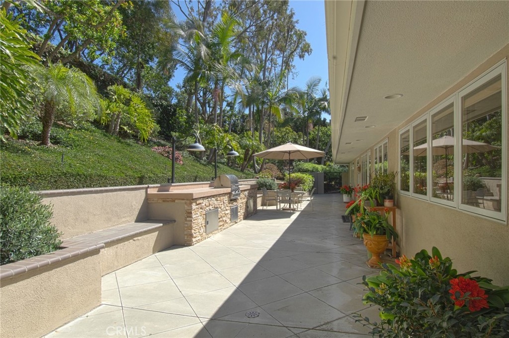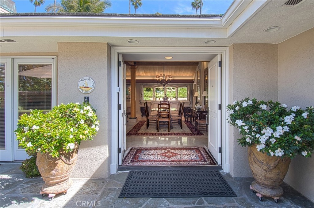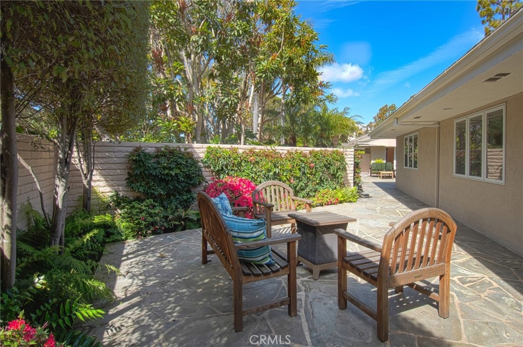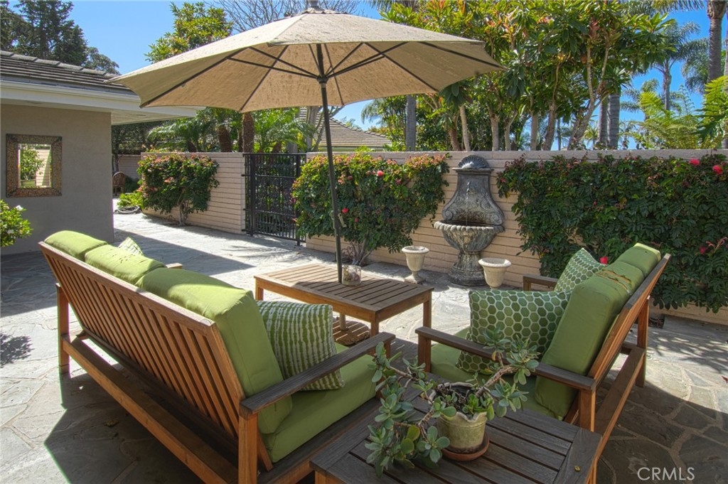 Situated within the exclusive, guard-gated enclave of Granville, this exceptional detached home seamlessly blends functionality with sophisticated design, offering an unparalleled living experience. Tucked away in a serene, private setting surrounded by lush, mature landscaping, this highly upgraded residence is a true sanctuary for the discerning buyer. Upon entering, the eye is immediately drawn to the dramatic Douglas Fir vaulted ceilings, soaring above a sun-drenched great room designed for both grand entertaining and intimate gatherings. A striking fireplace with a custom stone surround serves as the focal point, while the expansive layout provides ample space for formal dining and relaxation. Adjacent to the great room, the chef’s kitchen is a masterpiece of form and function. It boasts slab countertops, custom cabinetry, a spacious center island with a gas cooktop, a Sub-Zero refrigerator, stainless steel appliances, a generous walk-in pantry, and a cozy breakfast nook—perfect for casual dining. The luxurious primary suite offers a tranquil retreat with vaulted ceilings, custom millwork, and exquisite built-in cabinetry. The spa-inspired ensuite bathroom features a walk-in shower, a separate jetted soaking tub, and an oversized walk-in closet designed for maximum storage and organization. The secondary bedrooms are equally spacious, with one currently serving as a stylish office and den. A rare highlight of this Granville home is the separate casita, positioned off the front patio, offering a private and versatile space for guests or a home studio. Designed for seamless indoor-outdoor living, the rear exterior entertaining area is an entertainer’s dream, featuring a built-in grill, mature citrus trees, and a generous patio perfect for al fresco dining and gatherings. Additional upgrades and modern conveniences include dual-paned windows, air conditioning, ceiling fans, recessed lighting, epoxy garage flooring, and abundant in-home storage. Granville is a true hidden gem, offering resort-style amenities, immaculate grounds, and a stunning pool and spa—all just steps from the luxury shopping and dining of Fashion Island. This is a rare opportunity to own a meticulously upgraded home in one of Newport Beach’s most coveted communities. Don’t miss your chance to experience the best of coastal living in Granville.