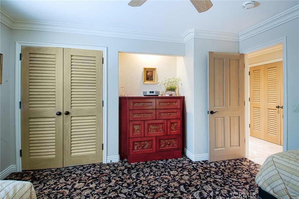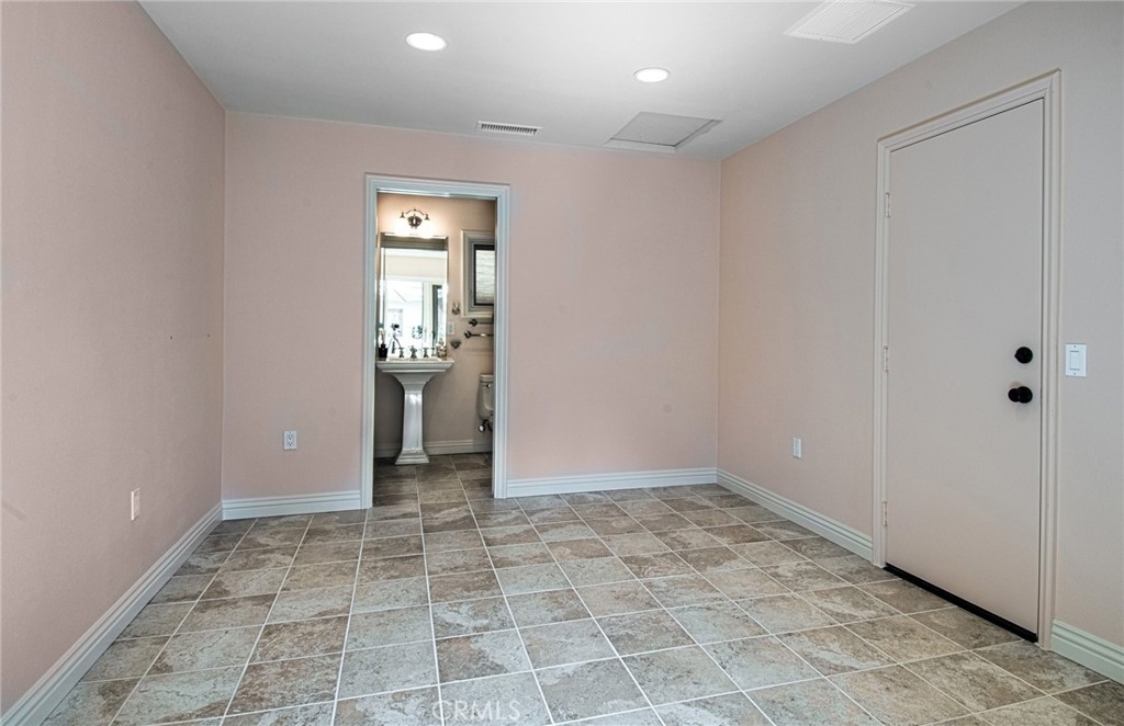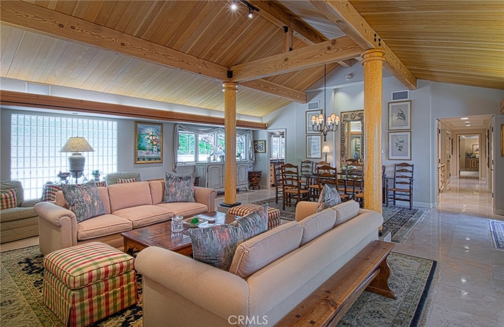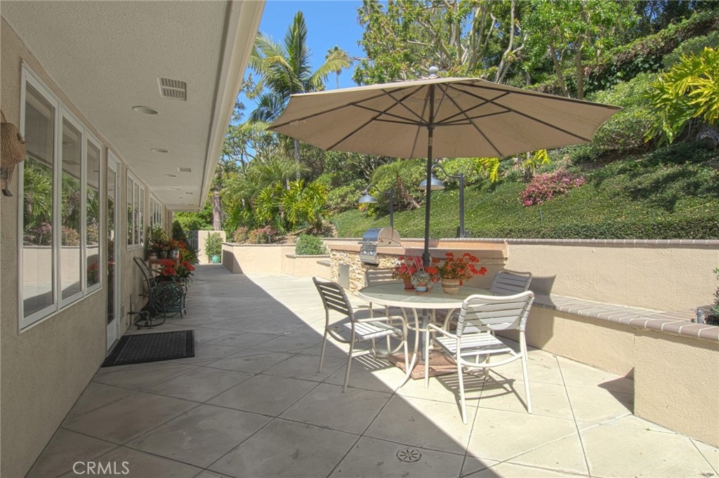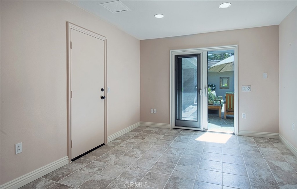 Situated within the exclusive, guard-gated enclave of Granville, this exceptional detached home seamlessly blends functionality with sophisticated design, offering an unparalleled living experience. Tucked away in a serene, private setting surrounded by lush, mature landscaping, this highly upgraded residence is a true sanctuary for the discerning buyer. Upon entering, the eye is immediately drawn to the dramatic Douglas Fir vaulted ceilings, soaring above a sun-drenched great room designed for both grand entertaining and intimate gatherings. A striking fireplace with a custom stone surround serves as the focal point, while the expansive layout provides ample space for formal dining and relaxation. Adjacent to the great room, the chef’s kitchen is a masterpiece of form and function. It boasts slab countertops, custom cabinetry, a spacious center island with a gas cooktop, a Sub-Zero refrigerator, stainless steel appliances, a generous walk-in pantry, and a cozy breakfast nook—perfect for casual dining. The luxurious primary suite offers a tranquil retreat with vaulted ceilings, custom millwork, and exquisite built-in cabinetry. The spa-inspired ensuite bathroom features a walk-in shower, a separate jetted soaking tub, and an oversized walk-in closet designed for maximum storage and organization. The secondary bedrooms are equally spacious, with one currently serving as a stylish office and den. A rare highlight of this Granville home is the separate casita, positioned off the front patio, offering a private and versatile space for guests or a home studio. Designed for seamless indoor-outdoor living, the rear exterior entertaining area is an entertainer’s dream, featuring a built-in grill, mature citrus trees, and a generous patio perfect for al fresco dining and gatherings. Additional upgrades and modern conveniences include dual-paned windows, air conditioning, ceiling fans, recessed lighting, epoxy garage flooring, and abundant in-home storage. Granville is a true hidden gem, offering resort-style amenities, immaculate grounds, and a stunning pool and spa—all just steps from the luxury shopping and dining of Fashion Island. This is a rare opportunity to own a meticulously upgraded home in one of Newport Beach’s most coveted communities. Don’t miss your chance to experience the best of coastal living in Granville.