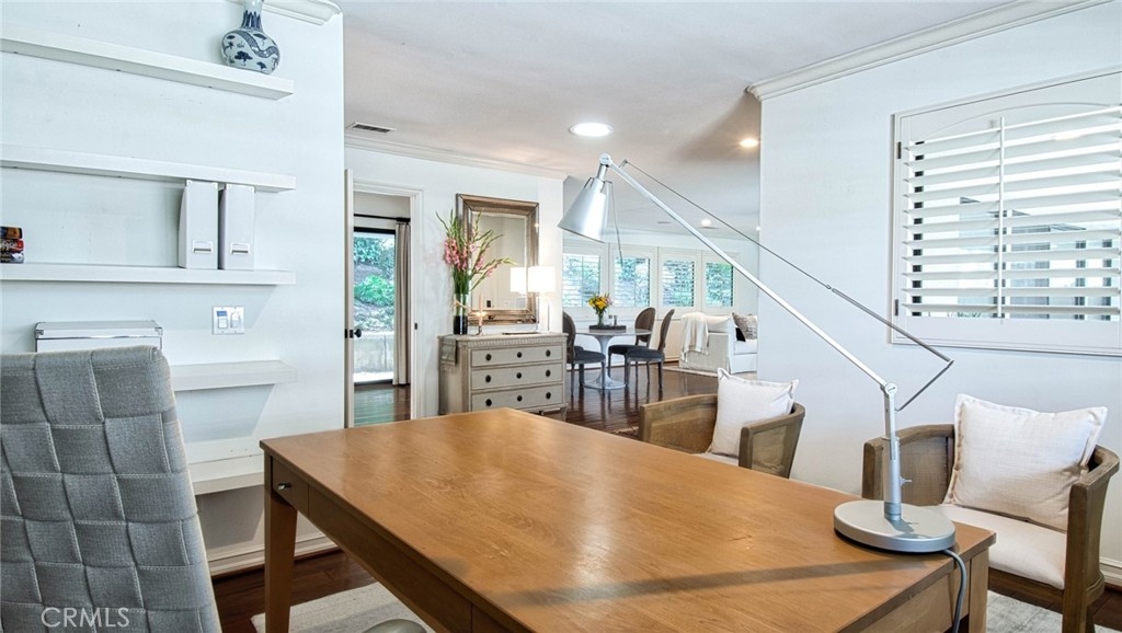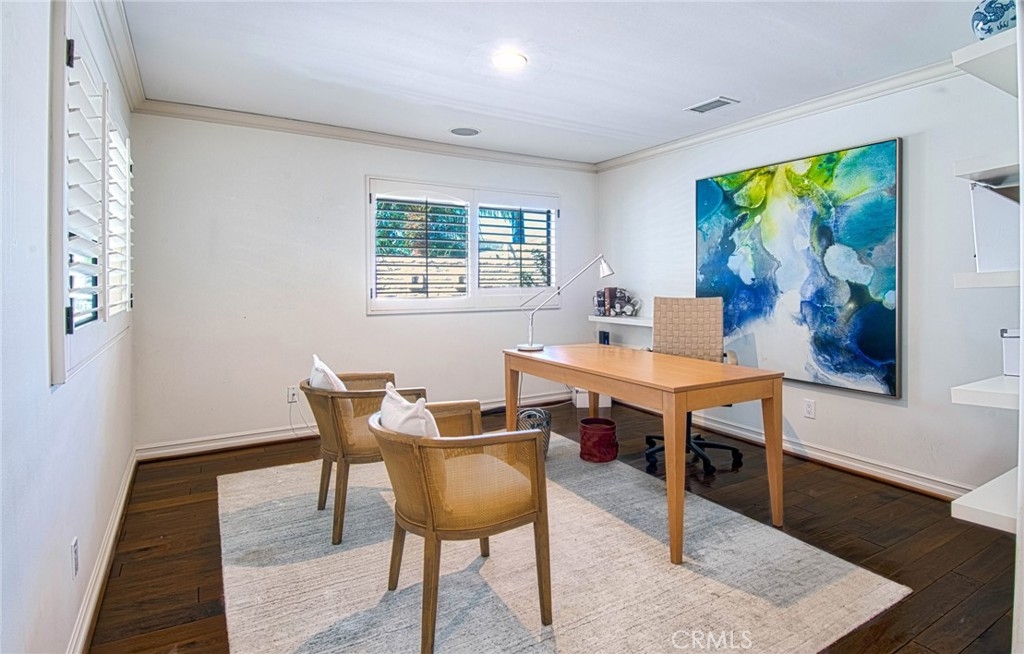 Welcome to this charming single level home located in the private guard gated community of Granville. Situated in a serene and coveted neighborhood, this stand alone home offers the perfect combination of comfort and privacy. Step inside and be greeted by an open and inviting floor plan. The spacious living area seamlessly flows into the kitchen, creating the perfect space for entertaining and everyday living. The kitchen is equipped with modern appliances, granite counters and plenty of storage space, allowing you to effortlessly prepare meals while enjoying the company of your guests. The home boasts wood floors, newer carpet in the bedrooms, crown moulding, a fireplace in the great room and shutters, adding a touch of elegance and warmth to the space. The neutral tones create a calming and tranquil ambience, providing the perfect backdrop for your personal style and furnishings. The primary bedroom offers a peaceful retreat, complete with an ensuite bathroom, with dual sinks and walk in shower and an ample walk in closet. The additional bedroom and office space provide versatility and can be adapted to suit your specific needs, whether it be a guest room, home office or hobby space. Outside you'll find a private patio adorned with a soothing water feature. This serene outdoor space is the ideal spot to bask in the afternoon sun, unwind after a long day, or host intimate gatherings with friends and family. Community amenities include, gate guard, pool, spa and clubhouse. The location of this home is unbeatable within walking distance, you'll find Fashion Island, The Newport Beach Country Club, The Tennis and Pickleball Club of Newport Beach and the newly renovated Vea, Marriott Hotel plus plenty of fabulous restaurants, Balboa Island and the Back Bay and world class beaches nearby. This home is a hidden gem!