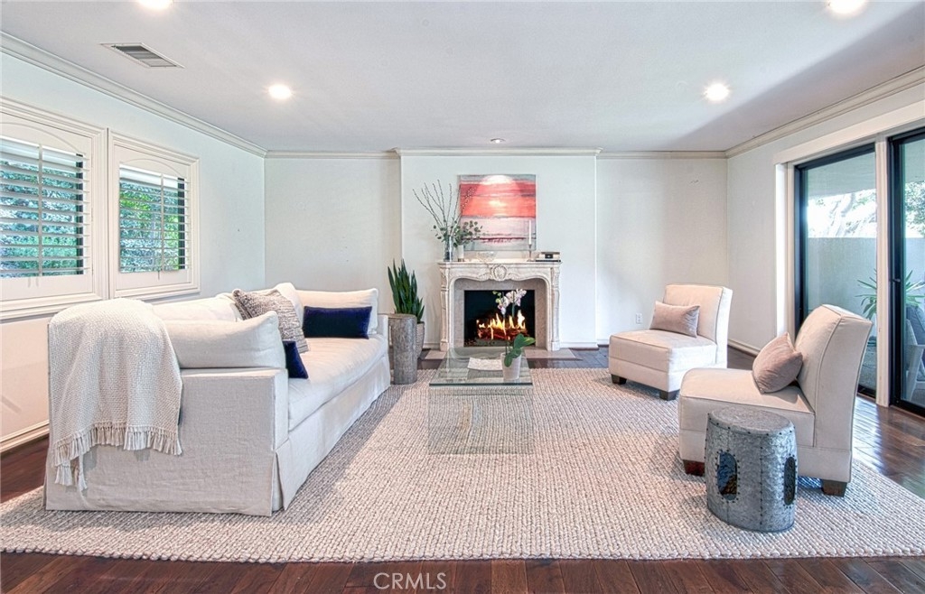 Welcome to this charming single level home located in the private guard gated community of Granville. Situated in a serene and coveted neighborhood, this stand alone home offers the perfect combination of comfort and privacy. Step inside and be greeted by an open and inviting floor plan. The spacious living area seamlessly flows into the kitchen, creating the perfect space for entertaining and everyday living. The kitchen is equipped with modern appliances, granite counters and plenty of storage space, allowing you to effortlessly prepare meals while enjoying the company of your guests. The home boasts wood floors, newer carpet in the bedrooms, crown moulding, a fireplace in the great room and shutters, adding a touch of elegance and warmth to the space. The neutral tones create a calming and tranquil ambience, providing the perfect backdrop for your personal style and furnishings. The primary bedroom offers a peaceful retreat, complete with an ensuite bathroom, with dual sinks and walk in shower and an ample walk in closet. The additional bedroom and office space provide versatility and can be adapted to suit your specific needs, whether it be a guest room, home office or hobby space. Outside you'll find a private patio adorned with a soothing water feature. This serene outdoor space is the ideal spot to bask in the afternoon sun, unwind after a long day, or host intimate gatherings with friends and family. Community amenities include, gate guard, pool, spa and clubhouse. The location of this home is unbeatable within walking distance, you'll find Fashion Island, The Newport Beach Country Club, The Tennis and Pickleball Club of Newport Beach and the newly renovated Vea, Marriott Hotel plus plenty of fabulous restaurants, Balboa Island and the Back Bay and world class beaches nearby. This home is a hidden gem!