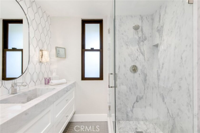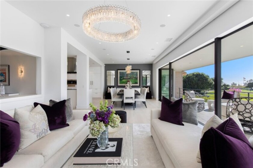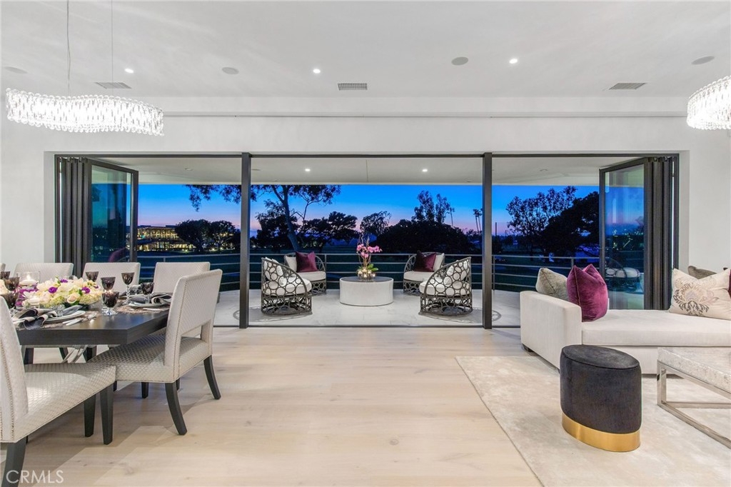 5 STEPS TO SINGLE LIVING -VIEW PROPERTY - GOLFERS DREAM HOME ON THE 9TH FAIRWAY of the NEWPORT BEACH COUNTRY CLUB - Unparalleled elegance and sophistication in this one-of-a-kind contemporary masterpiece in the prestigious Granville community of Newport Beach. Designed for the ultimate entertainer, this custom-built estate (completed in 2020) offers breathtaking 180-degree panoramic views of the 9th hole at Newport Beach Country Club, extending beyond to the Pacific Ocean and Catalina Island. Meticulously curated over two years, this home embodies entertainment luxury, seamlessly blending refined materials, state-of-the-art technology, and architectural brilliance. Every element has been crafted w/ an unwavering attention to detail, ensuring an ambiance of exclusivity and indulgence. The heart of this residence is its expansive OPEN-CONCEPT LIVING and DINING areas, featuring the NANO WALL SYSTEM, floor-to-ceiling glass doors that open to a sprawling 320+/- sq. ft. outdoor lounge. This home delivers a flawless indoor-outdoor experience complemented by awe-inspiring sunset vistas. CHEF'S DREAM KITCHEN - 10 burner gas cooktop by WOLF - Side by side SUB-ZERO refrigerators, 4 freezer & 4 additional fridge drawers by Sub-Zero - other WOLF appliances include double ovens, microwave, Steam Convection oven, built-in coffee station that includes a cup warming drawer WINE CONNOISSEUR'S HAVEN - the elevated wine room captivates w/ the ALABASTER BACKLIT WINE WALL - 200+/- bottles and 9 magnums LAVISH PRIMARY SUITE - A spacious sitting area w/private exterior access. A luxurious spa-like BR w/ a jet tub, expansive walk-in shower w/ stone slab walls, ambient lighting shower head and an expansive custom walk-in closet w/ a rolling ladder for elevated storage. SECONDARY SUITE - boasts a private entrance, designer stone finishes, STONE SLAB shower walls, counters, and sink. Built-in Cabinetry with stone countertop for extended storage - SMART HOME INNOVATION & Thoughtful Design - Fully Automated Smart Home system controlling locks, security cameras, lighting, HVAC, AUDIO, Shades and VISUAL equipment - Motorized 75-inch TV hidden above the LR fireplace - Garage w floor-to-ceiling cabinetry - Minutes from the ocean, Balboa Island, and Fashion Island’s world-class shopping and dining. An unparalleled opportunity to own a luxury entertainer’s dream in one of Newport Beach’s most coveted enclaves.
