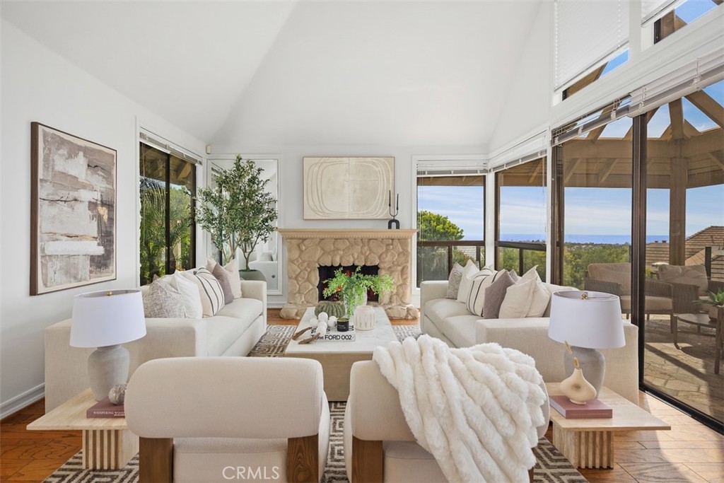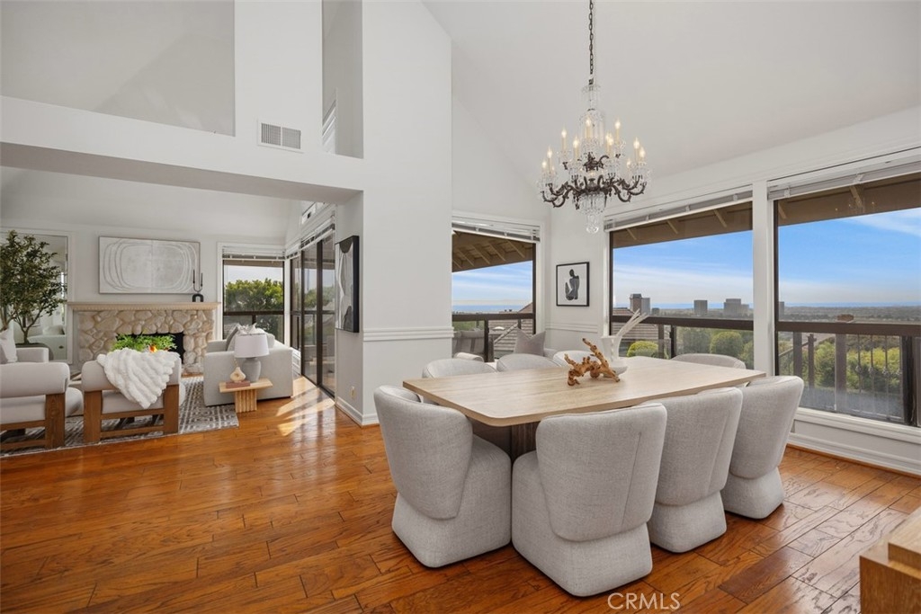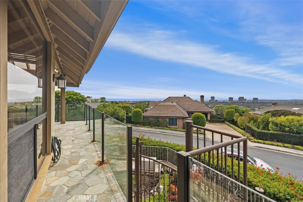Showcasing breathtaking panoramic views of the Pacific Ocean, Catalina Island, and city lights by night, this exceptional residence represents the largest floor plan in the Harbor Ridge Estates subdivision, ideally situated on a premium corner lot within the prestigious guard-gated community of Harbor Ridge. The home features five bedrooms, with the fifth bedroom ideally suited for use as a private office, and a primary suite conveniently located on the main level, offering an ideal layout for both comfort and flexibility. Expansive windows throughout the residence frame the stunning vistas and fill the interiors with natural light. The chef’s kitchen is equipped with a built-in refrigerator and high-end Viking stove, thoughtfully designed for both everyday living and entertaining. Spacious living and dining areas flow seamlessly, maximizing functionality while highlighting the home’s elevated setting. Additional highlights include a three-car garage, generous storage, and the privacy and security that define this sought-after Newport Beach enclave. Residents enjoy close proximity to world-class beaches, harbor access, fine dining, and premier shopping. A rare opportunity to own a view-oriented home of this scale in one of Southern California’s most exclusive communities.