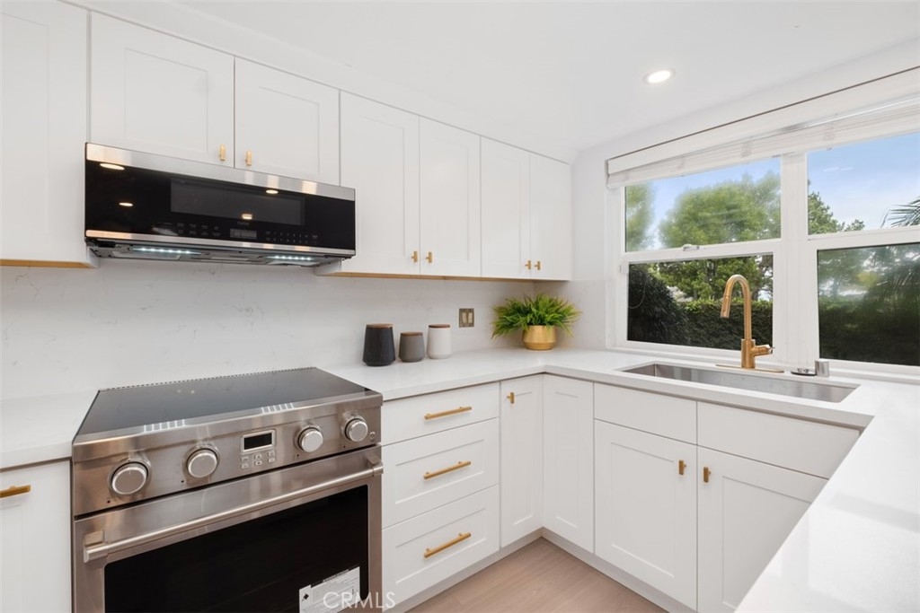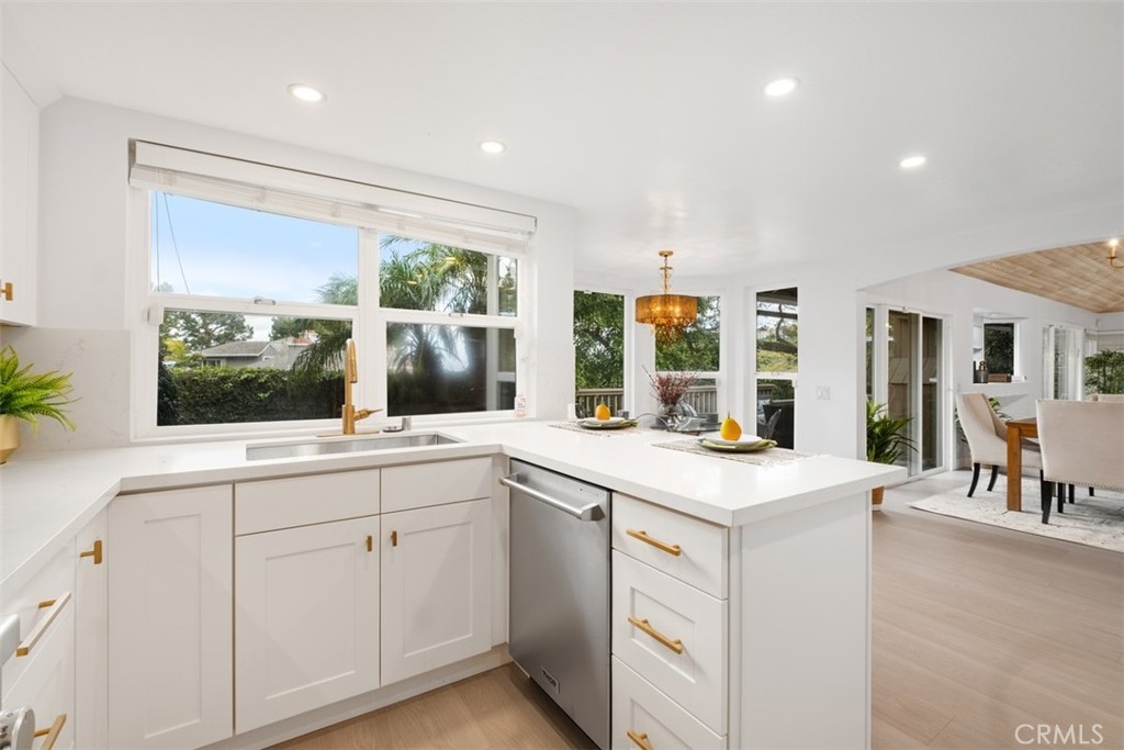Embrace luxury and comfort in this newly remodeled home in the highly coveted community of Harbor Ridge. Enter through a beautifully landscaped courtyard to the expansive living areas complimented by soaring ceilings and natural light. Upon entering, you are greeted by an open-concept floor plan that seamlessly integrates the living spaces, accentuating the sense of openness and grandeur. This open floor plan expands to a versatile living area, a sunken lounge by the fireplace, elegantly remodeled kitchen and a formal dining room that opens to a large deck overlooking the green belt, canyon, and mature landscape surrounding the community. This outdoor area is perfect for entertaining as well as a small retreat for relaxation. Enjoy all the comforts of a single level home in this prestigious guard gated community with easy access to beaches, shopping, restaurants and entertainment.