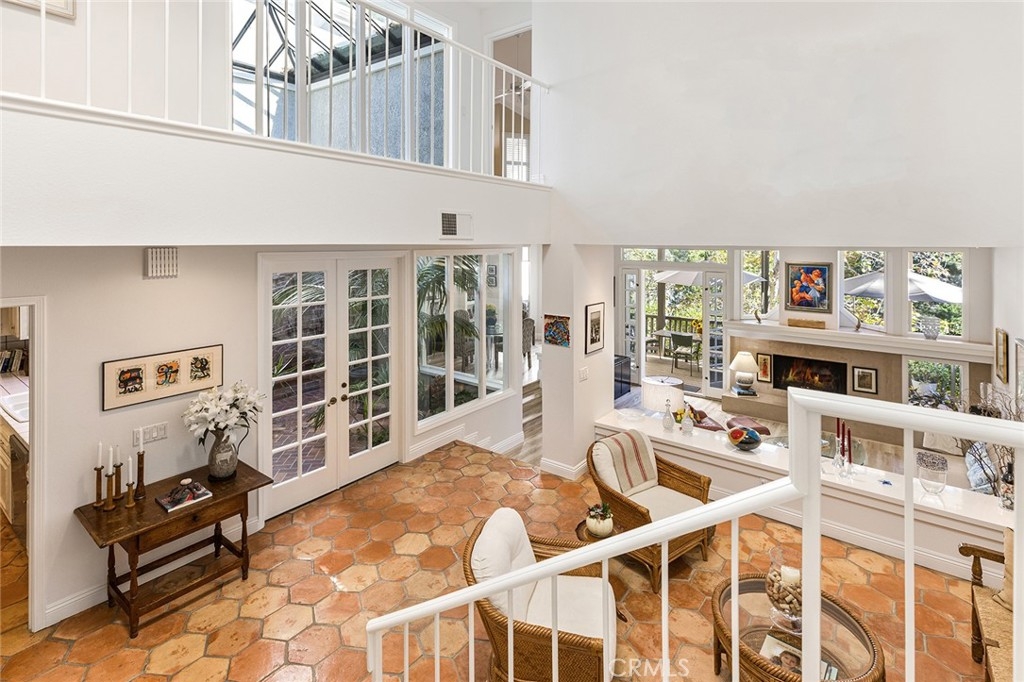 Welcome to a popular floor plan in the coveted 24-hour guard gated community of Harbor Ridge set in the hills of Newport Beach. Meticulously maintained, this townhome is an architectural gem and offers a spacious layout, great privacy and is rarely on the market. Enter into a well-manicured courtyard that will take you into the home which boasts high ceilings and skylights providing an abundance of natural light. A formal dining room with distant Saddleback mountain views and custom built-ins opens to the living room with an attractive fireplace. The cozy den just off the foyer includes a fireplace and a built-in desk and cabinetry which is perfect for a home office or home learning center. The central kitchen has a beautiful handcrafted wood ceiling and adjoins a breakfast nook with front courtyard views. A central atrium with a water wall provides more natural light and serene sounds of water. And a large private balcony for year-round outdoor dining extends off the back of the home. The upstairs large master suite unveils soaring ceilings and a light and bright bathroom with an abundance of closets. Two additional bedrooms and bathroom complete the second level. Enjoy a large 2 car garage with storage cabinets and a laundry room with a built-in ironing station. Newer wood flooring accents most of the home. Community amenities include 4 pools and spas and 3 tennis courts. Live close to Fashion Island, the beach and the 73 Freeway. Make it yours today!