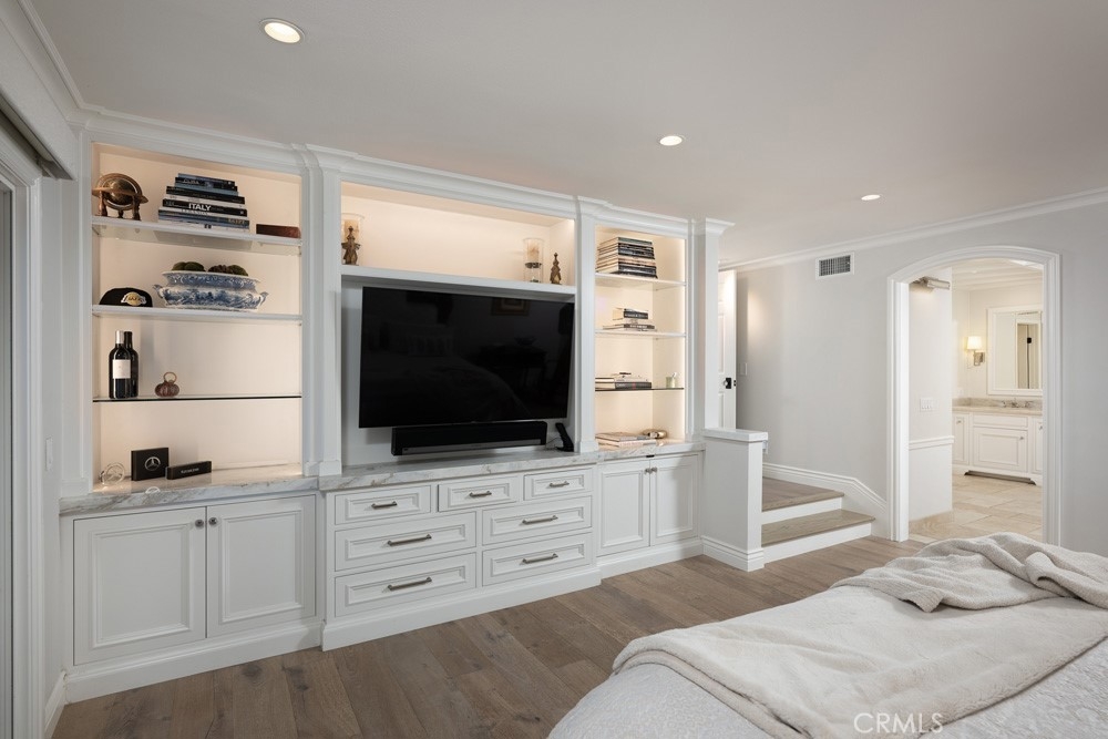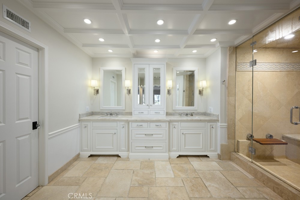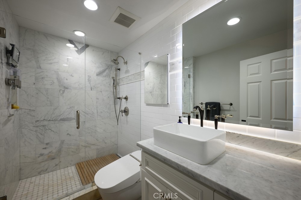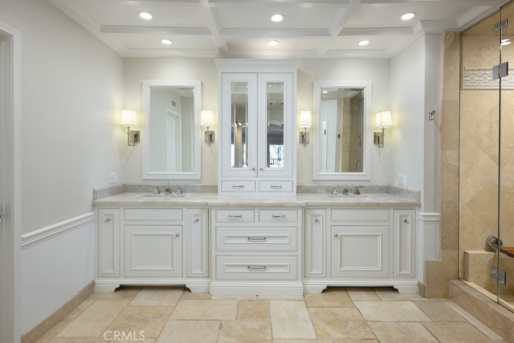 Experience elevated living in this exquisitely renovated Masterpiece, a single-level condominium with exceptional views situated within the exclusive 24-hour guard-gated community of Harbor Ridge in Newport Beach. Beautifully positioned to take advantage of the San Joaquin reservoir and mountain views, this stunning and spacious 2 bedroom, 2 bath home surprises with custom design elements fully reimagined and expanded. From an open floor plan with wainscoting to a gourmet kitchen with a large island including a party fridge, commercial ice maker, stunning countertops, and stainless-steel Sub-Zero, Wolf, and Bosch appliances, this home harmonizes current design trends with amenities. The primary suite is a dream with sleek built-ins, dual walk-in closets, and a spa-like bathroom complete with steam shower and custom two sink vanity. The second bedroom doubles as a luxe retreat or home office with a Murphy bed, flat screen, skylights, and more. Enjoy enhanced lighting throughout with an art gallery vibe. An oversized, finished two-car garage adds to the allure with Italian marble flooring, built-in storage, skylights, and a built-in wine refrigerator. Located near world-class shopping, dining, beaches, golf, and top-rated schools, this Harbor Ridge gem offers the perfect blend of luxury and coastal convenience.