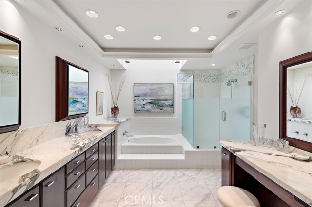 Welcome to 11 Saint Tropez, a sought after single-level residence nestled within the prestigious 24-hour guard-gated community of Harbor Ridge in the heart of Newport Beach. This expanded and customized 3 bedroom, 2.5 bathroom home spans 2,816 square feet and epitomizes resort style living with its breathtaking 180-degree views of the ocean, Catalina Island, city lights and snowcap mountains. Situated on a tranquil single-loaded street, this property ensures maximum privacy and security. The expansive and open floor plan is designed to take full advantage of the stunning vistas, flooding the home with natural light and creating a serene and inviting atmosphere. Step inside to discover elegant living spaces including a spacious living room with a cozy fireplace, a gourmet kitchen adjacent to the nook with spectacular view and a formal dining room with a skylight, perfect for entertaining. The master suite is a private oasis, featuring a spa-like en-suite bathroom and direct access to the picturesque outdoor patio with a resistance pool and spa. Second bedroom is converted to a library/office looking out at the breathtaking view. Third bedroom is an en-suite with a walk-in shower and situated on the opposite side of the entry which makes it perfect for a guest or live-in. Harbor Ridge offers residents an unparalleled lifestyle with access to exclusive amenities, including meticulously maintained grounds, 4 pools, 3 tennis courts and scenic walking trails. Experience the coastal California lifestyle living at 11 Saint Tropez, where luxury and tranquility converge. Don't miss the opportunity to make this extraordinary property your new home.