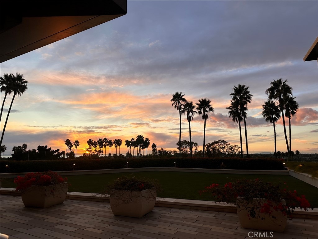 A stunning Villa with Ocean & Golf Course Views, located in the exclusive gated enclave of The Meridian, this exquisite 3-bedroom, 3.5-bath residence represents the pinnacle of coastal luxury condo living. Step inside to beautifully polished white marble floors accented with custom inlaid cross beams of Brazilian walnut, an elegant detail that sets the tone throughout the home. The expansive great room flows seamlessly into a chef’s dream kitchen, centered around a dramatic oversized island crafted in light white marble with soft cream and gray veining. Marble surfaces continue throughout the residence, including the pristine primary bath and the luxurious secondary bedroom baths. The formal powder room features intricate marble inlays, offering a sophisticated touch for guests. The primary suite is a serene retreat with gleaming high-gloss solid walnut flooring, a spa-inspired marble bathroom, and a grand walk-in closet that cleverly connects to a secondary bedroom through a discreet back entry. A charming den expands the living space off the great room, ideal for an office, library, or cozy separate media space. A beautiful outdoor terrace overlooks sweeping views of the ocean and the lush fairways of the Newport Beach Country Club—perfect for enjoying over morning coffee, sunset gatherings, or simply taking in the coastal breeze. The Meridian lifestyle offers unmatched convenience and security, with subterranean gated parking, generous on-site storage, a state-of-the-art fitness center, resort-style pool and spa, and a welcoming outdoor barbecue area for residents and guests. Just steps from Fashion Island, fine dining, and world-class entertainment, this premier location blends luxury with effortless accessibility to superb amenities such as shopping and dining. Just ten minutes to John Wayne Airport, and fifteen minutes to the Segerstrom Performing Arts Center where you may enjoy world class theatre, opera and the symphony.