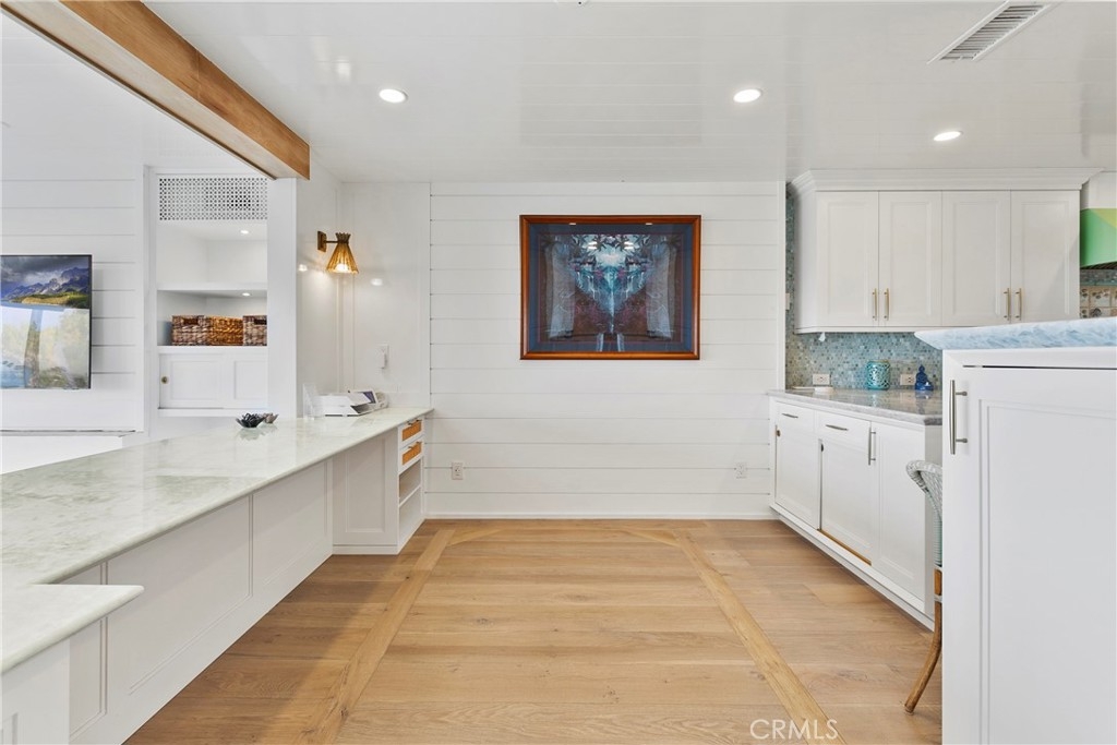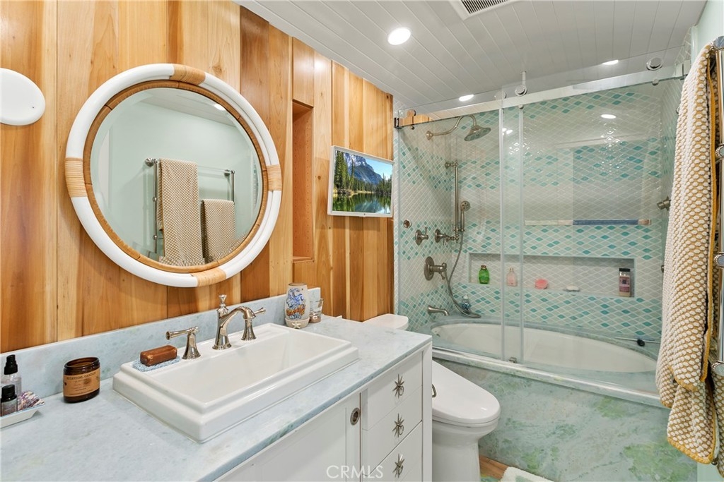 Welcome to your dream home in Newport Beach! This extensively remodeled condo is a true gem nestled in the heart of this coastal paradise. Boasting an elevated position atop the bluff, it offers breathtaking panoramic views of the ocean and Catalina Island, providing an enchanting backdrop for your everyday life. Designed with the most discerning buyer in mind, this home showcases meticulous attention to detail and a commitment to excellence throughout. No expense has been spared in creating a truly luxurious living space. The designer finishes are simply exquisite, with each element thoughtfully chosen to elevate the ambiance and style of the home. Prepare to be captivated by the sheer beauty of this residence. Crystal quartz countertops throughout the home exude elegance and sophistication. The ‘hue’ lighting system allows you to effortlessly set the perfect mood for any occasion; the wide-plank hardwood flooring adds warmth and character to the space, and the additional closet and storage space provides you with ample room to store your personal belongings. Extensive custom woodwork creates a sense of craftsmanship and artistry throughout the home, while tongue and groove ceilings, shiplap, beadboard and wainscoting add a touch of coastal charm. Admire the hand-painted wood tiles and the exquisite laser-etched cabinetry which showcase the level of detail that has gone into every aspect of this property. Not only is this home a work of art, but it also offers a prime location. Enjoy the convenience of being just moments away from the vibrant dining and shopping scene at Fashion Island, where world-class cuisine and high-end boutiques await. The Newport Harbor beckons with its picturesque marinas and water activities, perfect for those who enjoy a nautical lifestyle. When it's time to relax, you'll be spoiled with some of Orange County's finest beaches at your doorstep where you can bask in the sun, take a dip in the ocean, or simply savor the tranquility of the coastal breeze. And for those who appreciate the arts, the world-renowned Segerstrom Center for the Arts is within easy reach, offering a plethora of cultural experiences. This chic beach cottage is more than just a home; it's a lifestyle. Immerse yourself in the coastal beauty, indulge in the finest amenities, and embrace the essence of Newport Beach living. Don't miss this opportunity to make this exceptional property your own.
