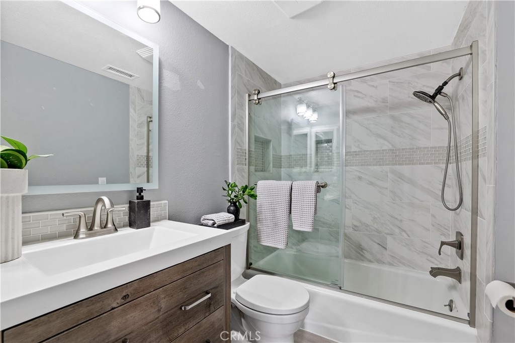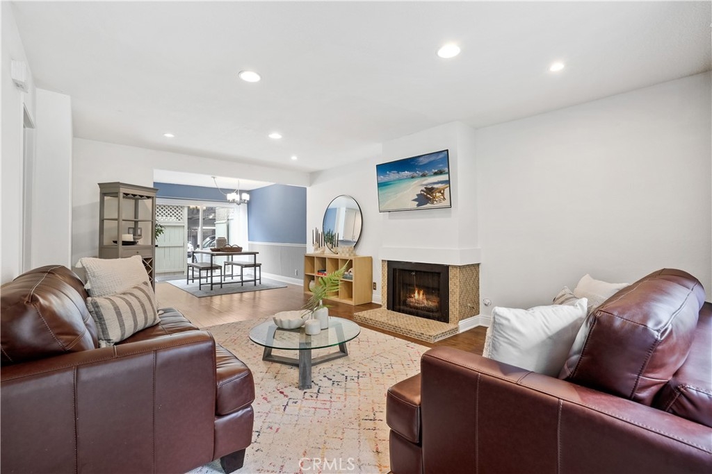 This gorgeously upgraded condo is move in ready in the desirable community of Newport Terrace. Enter into the inviting family room featuring a cozy fireplace and dual paned sliding door to a private patio perfect for outdoor dining year round. The kitchen is well-appointed with stone counters, wine refrigerator, solid wood cabinets and stainless steel appliances. The primary bedroom features vaulted ceilings, new carpet, an oversized closet, ceiling fan and an en suite master bathroom beautifully remodeled. The secondary bedroom is generously sized with new carpet, wood beams accenting the vaulted ceilings and has an en suite bathroom. This home looks and shows as beautiful as the photos present it! Parking is easy with a convenient single car garage and carport making this arguably one of the best values available in Newport Beach. The community recently completed a stunning multi-million dollar renovation including all property exteriors, lighting & landscaping, pool, spa, sport court, BBQ & picnic areas. Newport Terrace is a hidden gem! This resort-like community is only 1 mile from the beach and is pet friendly! Surrounded by wooded walking trails, canyons, parks, a bike trail to the beach plus so much more, and yes it's Newport Beach!
