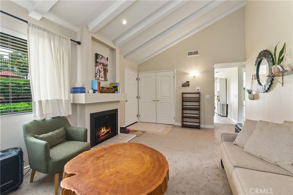 Don’t miss the opportunity on this quaint Newport Terrace, end unit condo. Situated in a prime location on the greenbelt, the home’s floor plan provides 2 bedrooms and 2 baths. The front living room provides an abundance of natural light, cozy fireplace with mantle, and vaulted, exposed beams ceilings. The updated kitchen is complete window looking out to greenbelt with granite counters and plenty of cabinet space. The dining area off the kitchen leads to the outdoor patio area and detached 1-car garage. Additional appointments include ceiling fans, indoor laundry and updated baths. Community amenities include pool, basketball courts and greenbelts throughout.