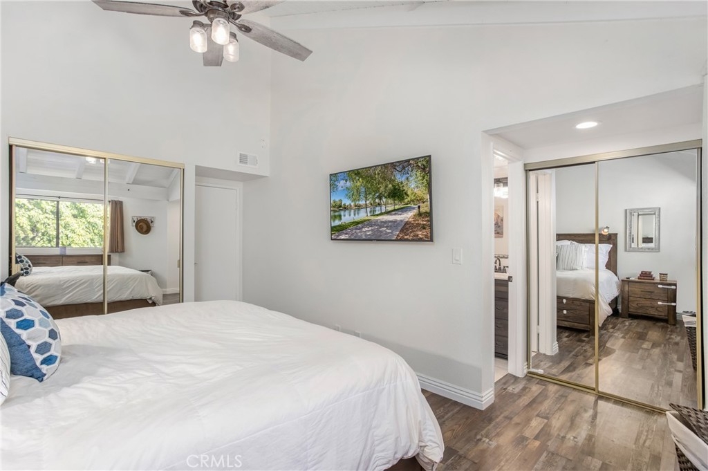 Newport Beach at it's best! Just a short distance to the big, beautiful, white sandy beaches of the California coast and hiking trails within the community of this beautiful beach getaway! Be ready to enjoy the peaceful tranquility of the trees and greenery that surround this 3 bedroom 3 bath beach home. Newly appointed hard surfaced wood like flooring and recessed lighting throughout the main living area with fireplace make this a perfect place to relax. The kitchen has a large pantry and overlooks the lovely dining area and private patio. All of the bedrooms have hard surfaced floors and are generous in size with high ceilings in the primary suite. The two secondary bedrooms are nicely appointed with ceiling fans, custom shelving and mirrored closet doors. All baths feature newer dark wood cabinetry and fixtures. The large patio is perfect for entertaining and has a turfed pet system. The garage has a huge loft for extra storage and additional covered parking is attached for convenience to the home. Enjoy the beautiful community pool, spa, outdoor cooking area and recreational courts for fun times.