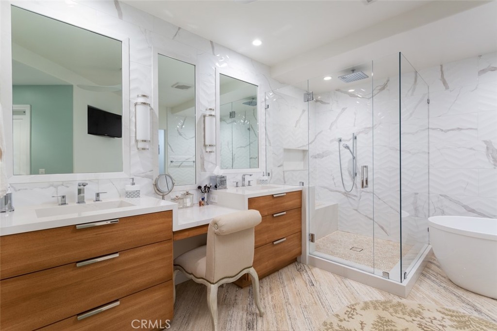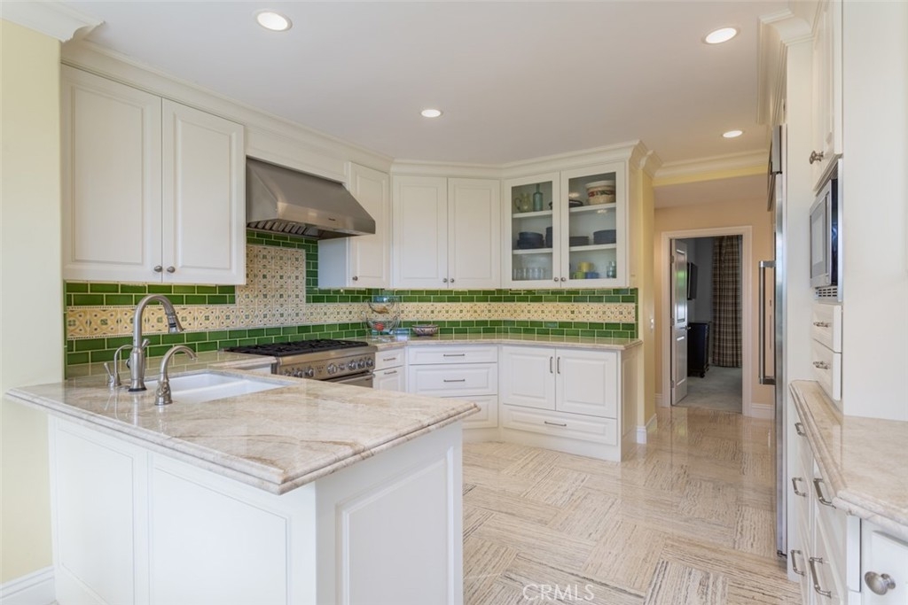 A jewel in the guard-gated community of Sea Island, 29 Seabrook Cove boasts a highly-coveted and rarely available lower single-level floor plan. Private and lush, it exudes an ambience of fresh style and sophistication that is rarely seen to this magnitude. Encompassing over 2,600 square feet of living space, it was completely remodeled, expanded and professionally designed using an impeccable material selection and thoughtfully finished with every detail. This exceptionally detailed three bedroom and three bathroom home sits ideally at the end of a cul-de-sac offering a sublime, private yard, perfect for both relaxation and entertaining. Upon entry, the formal living room welcomes you with outdoor views, boasting natural light, direct access to the formal dining room, and chef’s kitchen offering custom backsplash, sleek Quartzite countertops, Thermador appliances, and ample storage. Retreat to the primary suite to find serene views of the backyard, ample storage in the walk in closet and a bathroom carefully created for tranquility with stunning tile and luxurious free standing tub. Stunning throughout, the home features travertine flooring, impeccably curated tile and finishes, indoor washer/dryer with custom cabinetry, an oversized elevator and much more. Sea Island is conveniently located near Fashion Island, restaurants, beaches, freeways and more. The community amenities include two tennis courts, two pools and spas, and a newly remodeled clubhouse.