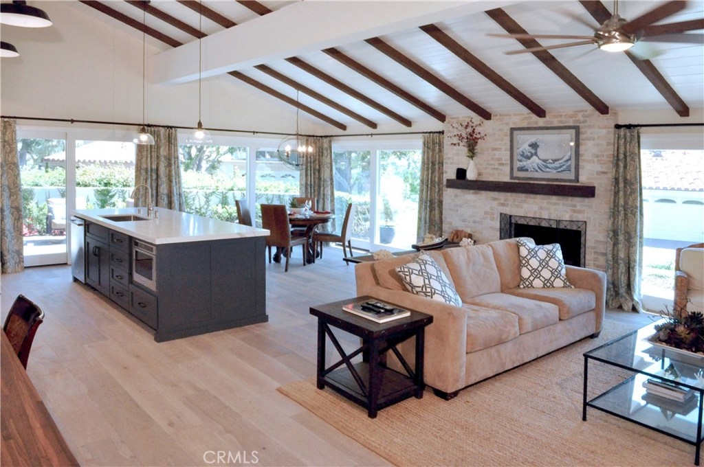 This is a beautiful single-family home in the Bluffs community of Newport Beach. This charming end unit just received an 18-month renovation boosting its living space and creating an open floor plan. The large quartz island, custom built-ins, indoor laundry/pantry, and earthquake retrofitting are just some of this home's unique amenities. The added footage to the master suite allowed for a master “spa” bath with a larger shower, soaking tub, double vanity, and a second closet (walk-in). The architecturally stunning layout of the home allows most rooms access to the backyard's southern exposure. Enjoy the sunny Back Bay view from the new private garden/patio with custom stone, speakers, fountain, and landscaping. Gentle bay breezes flow through this light and bright home featuring vaulted ceilings with shiplap, exposed beams, and hardwood flooring. The home theater in the living room boasts a built-in surround sound system and real wood fireplace with vintage brick. The second bedroom is oversized and also has vaulted ceilings, a shiplap feature wall, and a large picture window. Off the spacious laundry/pantry, there is direct access to the spectacular attached two car garage with epoxy flooring and LED lighting. This single-family home with a level entry is not to be missed. You will enjoy miles of the Bluffs' walking trails and several pools, one less than 100 steps away. It is coastal living at its finest and just minutes from all that Newport Beach has to offer.