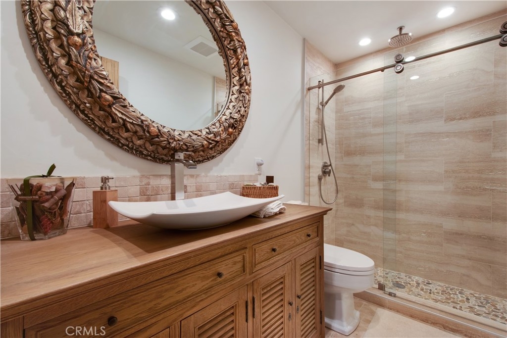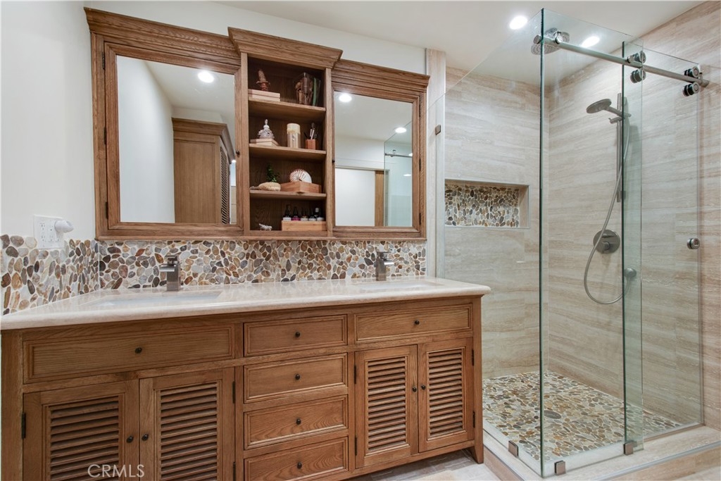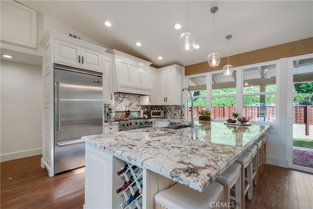 Exquisite Bluffs residence on a quiet cul-de-sac with spectacular Back Bay views (plus a 5-car garage, a $100,000+ conversion). This absolutely meticulous property has been completely rebuilt with style, taste and sophistication. The two bedroom + office is a showpiece and every inch has been beautifully crafted with attention to detail and quality. Restoration Hardware, Hansgrohe, Viking, Milgard, Kraus, Blanc du Blanc stone, Rinnai (tankless), Rheem, the list goes on. Upon entering the home, the views of the Back Bay may mesmerize, but chefs will love the gourmet kitchen, adorned with top-quality appliances, stone counters and backsplash, abundant storage, custom-crafted, deep cabinets and farmhouse sink with views towards the tranquil, private backyard. Yes, it also has a 5-car garage with treated floors and storage for toys. The living/great room is a great place to entertain and enjoys commanding views of the greenbelt and the water beyond. The master also enjoys sit-down views and is enhanced with a spa-like bathroom with European fixtures, rain shower, marble floors and polished agate. The 2nd bedroom and bath is equally impressive and your guests may not leave. A full-width balcony with sun shades is an inviting refuge to enjoy sunsets from, plus there’s a private back yard that’s perfect for a bbq as well and your pets. Interior laundry with additional garage hook-up. Easy walk to the pool and view trail with huge grassy retreat outside the front door.