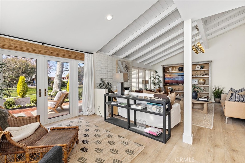 Don't miss out on this expanded end unit Angelita model. This lovely single level home has two bedrooms, two baths plus an office or crafts room. You will love the prime Bluffs location. Enjoy the afternoon sun and park like setting from your spacious back patio. Vaulted wood beamed ceilings compliment the floor plan. Updated throughout, spacious master suite with a walk-in shower, bench seating and frameless shower enclosure that looks onto a private atrium. The kitchen has been remodeled with quartz countertops, tiled back splash and current cabinets and appliances. Light wood plank vinyl flooring is water and scratch resistant. Other upgrades include a complete above ground re-plumb, air conditioning, forced air heating and the interior has been freshly painted. The garage walls and ceiling are finished and freshly painted with canned lighting and epoxy flooring. Just steps to one of the two full time heated Community pools.