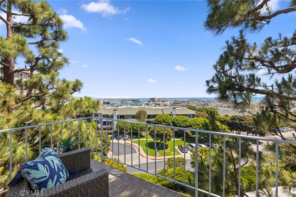 Experience panoramic ocean, Harbor, Lido and Catalina views for less than $1 million in Newport Beach! This beautifully appointed 2 bedroom, 2 bath Penthouse residence at Versailles is the ideal, turnkey primary or secondary residence within an easy stroll to the beach and steps from Sunset Ridge Park. Designed for casually elegant living and entertaining, the home features an appealing open floor plan and a lovely neutral interior palette. The residence is infused with sunlight and enjoys Harbor and/or ocean views from every room. Highlights include the great room with spacious living and dining area and two terraces with sweeping Harbor, ocean and Catalina Island views. The kitchen is finished in granite with stainless steel appliances and encompasses an adjacent home office area. The master includes an ensuite bath, walk-in shower and walk-in cedar-lined closet. The guest bedroom features wainscoting and the guest bath showcases artisan stone work. An interior laundry room and three parking spaces complete the home, which also enjoys Versailles community amenities including pool, spa, clubhouse, BBQs, and gated security access. Don’t miss this incredibly priced view home close to dining, shopping, entertainment and the beach in the heart of Newport.