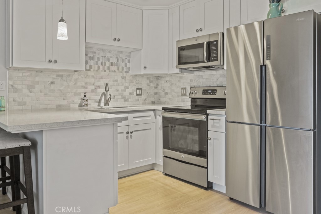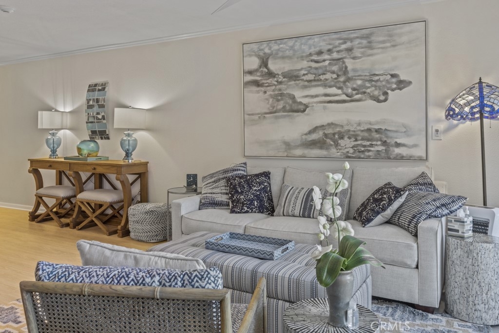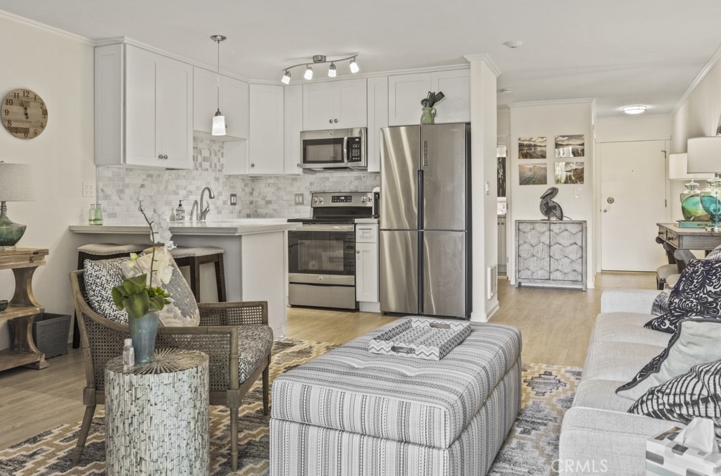 Completely upgraded super cute "Junior One Bedroom" with fantastic upgrades that include a newer kitchen with Quartz countertops, hardwood flooring, newer bathroom & canister lights throughout. The open space design with plenty of natural lighting leads to a spacious patio overlooking the beautiful greenbelts and fountain view. The Community is fully equipped with a gym, a pool, and more. Centrally located to all of the best spots in Newport Beach. Only minutes to the oceanfront.