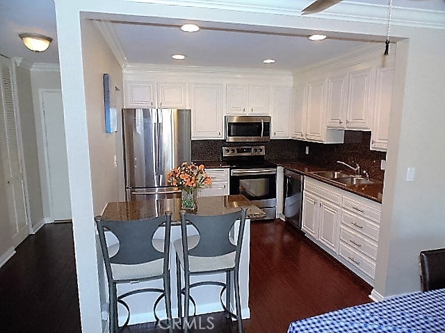 Come see this beautifully remodeled Penthouse Condo in Newport Beach. Located in the gated resort-style community of Versailles. Fabulous location adjacent to Hoag Hospital and a short walk or bike ride to Southern California’s premier beaches. This spacious one bedroom, one bathroom condo sits on the top penthouse floor. Boasts an open floor plan, upgraded kitchen that opens to a spacious living room. Kitchen features stainless steel appliances, granite counter tops, breakfast bar, and plenty of counter space & storage. Condo also features hardwood flooring, new paint, crown molding, scraped ceilings, and recessed lighting. Large balcony off the living room is perfect for entertaining or simply relaxing in the cool breeze off the ocean. Enjoy resort-style amenities, HOA dues include: paid water, trash, gated community, clubhouse with kitchen, pool & Jacuzzi, two exercise rooms, on site laundry facility, bike storage, garage parking, and more! Must see and move in ready!