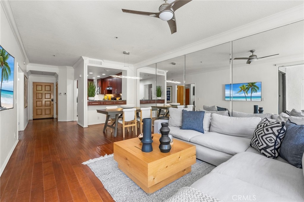 Discover this beautifully upgraded, single-level 1 bed, 1 bath end unit condo offering 975 sqft of of open living space in the heart of Newport Beach. Step into a bright, airy layout with coastal vibes throughout, featuring crown molding, recessed lighting, and distressed maple engineered wood flooring in the living and bedroom areas. The kitchen boasts granite countertops, custom cabinets with pull-out shelves, a high-end stainless steel sink and faucet, and natural stone flooring. The spa-like bathroom is a sanctuary with a Porcelanosa fully tiled design, jetted oversized tub, and custom cabinetry with high-end finishes. Electric custom shades in the bedroom and living room, along with recent updates like new screen doors, and a one-year-old HVAC system. Enjoy outdoor living on the large patio with a closet for extra storage, plus additional storage units in the underground parking spaces. The condo offers a peekaboo pool view and overlooks a peaceful greenbelt. Located in a gated community with 24-hour controlled access, you'll have access to top-notch amenities including tennis, pickleball and basketball courts, two pools with built-in BBQs and jacuzzis with remodeled bathrooms and showers, a state-of-the-art gym, and a clubhouse with a full kitchen and outdoor dining area. Just steps from a public ocean view walkway and a park with soccer fields, playground and minutes from world-class beaches, Newport Peninsula, and Lido Marina Village.
