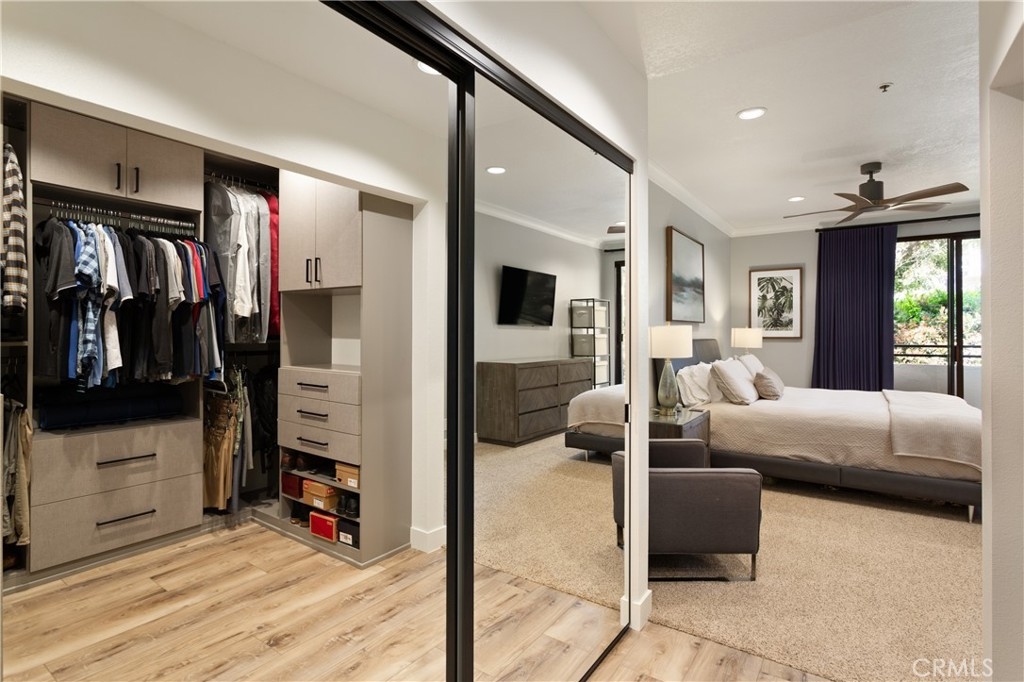 Welcome to 270 Cagney Lane Unit 215! A beautifully remodeled and spacious 2 bedroom, 2 bathroom condo offering 1,295 square feet of sophisticated living in the highly sought-after Villa Balboa community of Newport Beach. Just a short stroll to the sand, this home blends comfort, modern upgrades, and an unbeatable location. Remodeled in 2021, the interior boasts thoughtful, high-end finishes throughout. The primary suite features a luxurious custom shower, a California Closets-designed storage system, blackout ripple fold drapes, and a sleek Modern Forms ceiling fan. The spa-inspired primary bathroom includes durable and stylish vinyl plank flooring. Enjoy ambient lighting throughout with recessed can lighting controlled by Casetta wireless light switches. Automated Hunter Douglas roller shades in the living room and office offer both convenience and style. The open-concept layout flows seamlessly onto a private patio, complete with a built-in gas line and BBQ—perfect for entertaining. Additional features include an in-unit washer and dryer, a refrigerator, and a reverse osmosis water system with mineral filter, maintained annually for optimal water quality. The community recently completed a full exterior siding renovation, and Villa Balboa amenities include secure access, pools, fitness center, and more. Don’t miss your chance to live the Newport Beach lifestyle in this turnkey, modern coastal retreat!