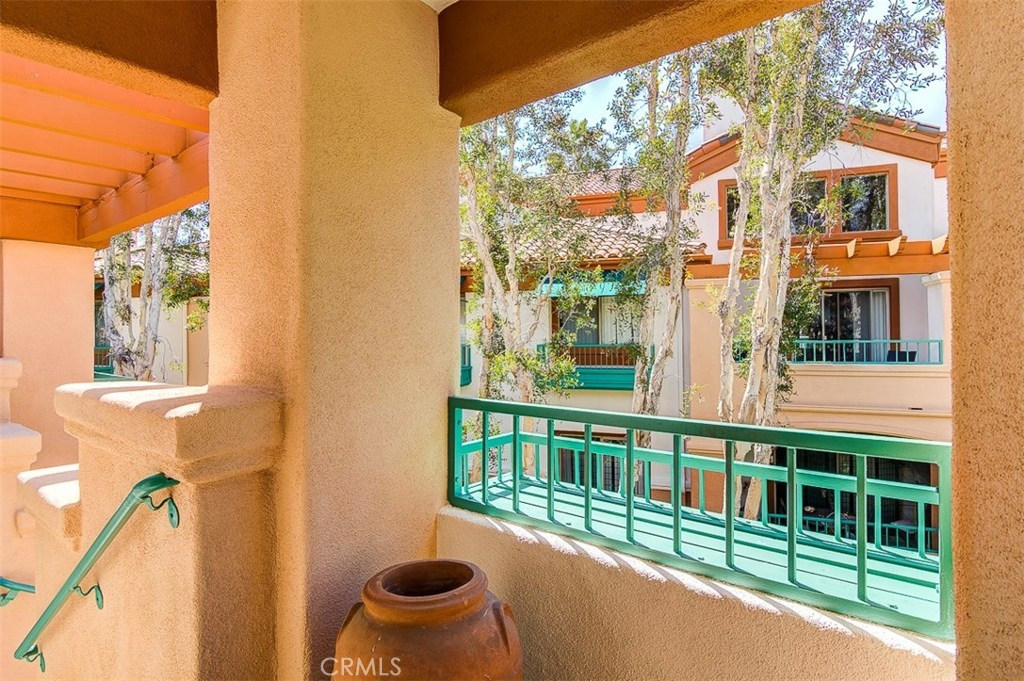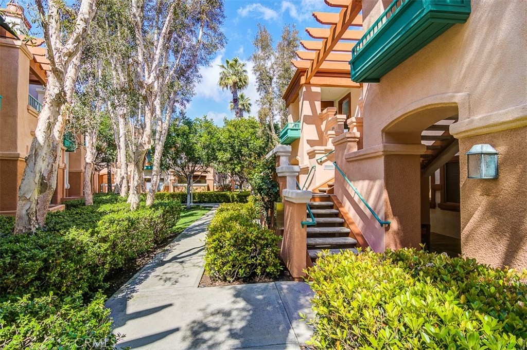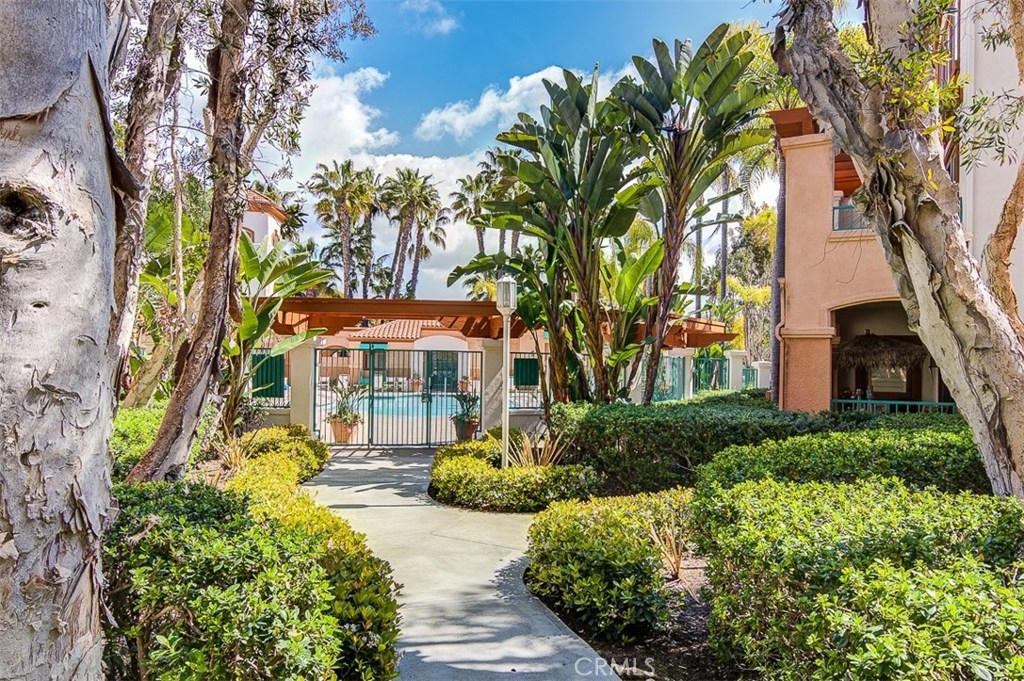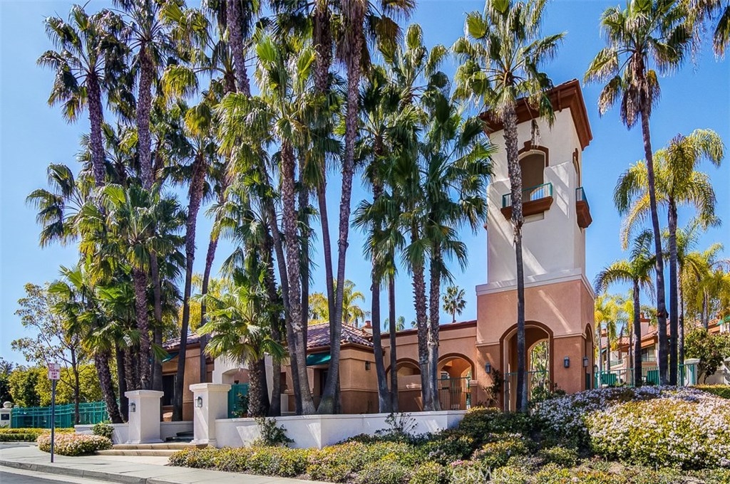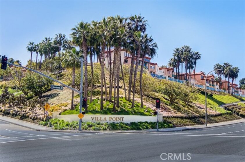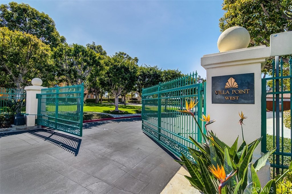 Nestled in a beautiful gated community close to Balboa Island, Fashion Island and Corona del Mar, this upstairs, corner unit welcomes you into a large living room with cozy fireplace, and a balcony looking out onto a lush canopy of greenery. The spacious kitchen has plenty of room for food prep and a counter-height breakfast bar that opens to a roomy dining space. An easily accessible, interior laundry room with stackable appliances and extra storage is just off the kitchen. The main living spaces have high ceilings and large, picture windows that allow in ample natural light. Adjacent to the living room is a sunny primary bedroom, with balcony access, that provides a private oasis at the end of the day. The primray suite has an upgraded bathroom featuring large vanity area with granite counter tops, remodeled shower and spacious walk-in closet. Neutral carpet was installed throughout the home in early 2019, and new central air will keep you cool during those warm summer months. This unit includes a 1-car, detached garage with overhead storage, plus one additional parking space for a registered vehicle. The upscale Villa Point community offers two heated swimming pools year-round and two fitness centers. There are picnic tables and gas grills available outdoors as well. With no interior steps, and a quiet location close to the pool, mailboxes and your private garage, this home is a must-see!