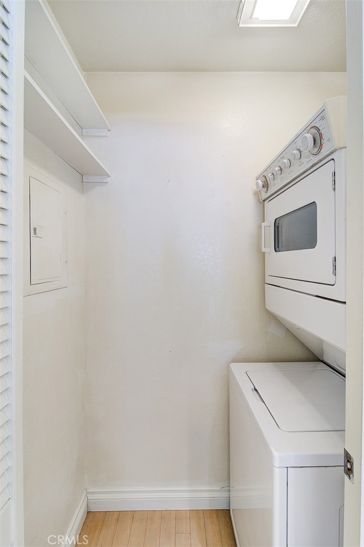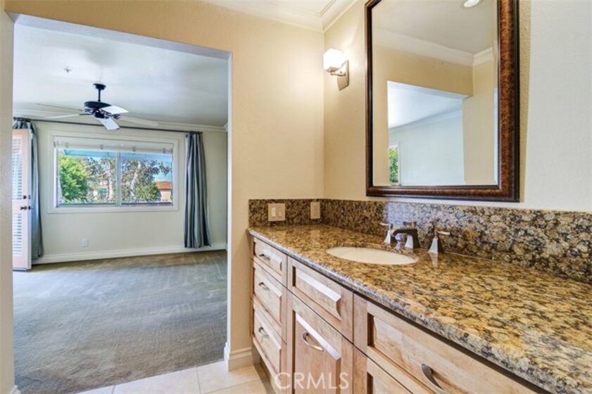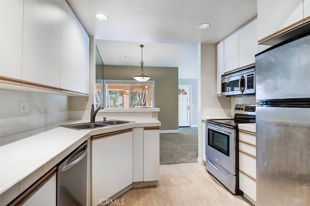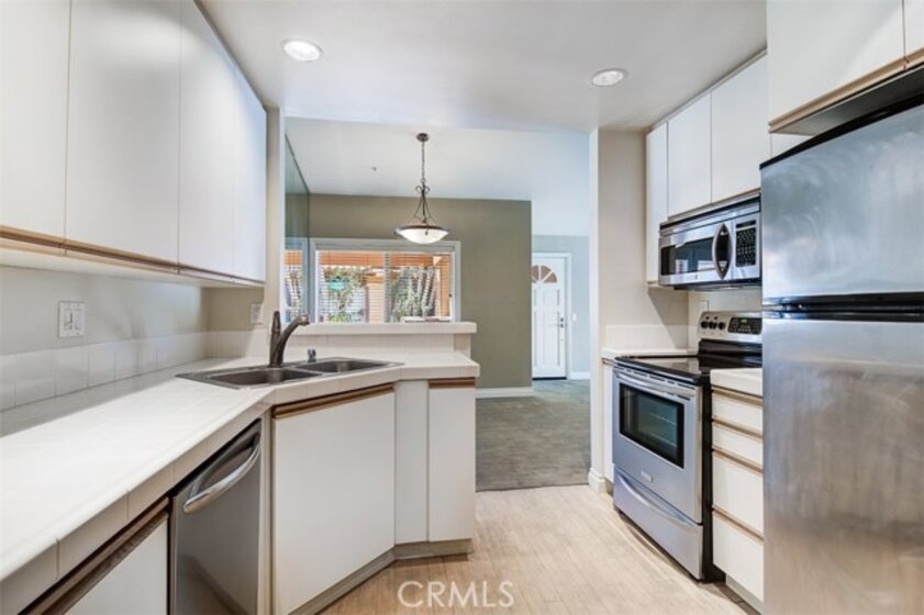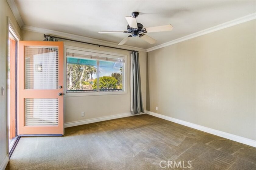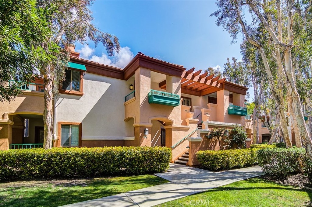 Nestled in a beautiful gated community close to Balboa Island, Fashion Island and Corona del Mar, this upstairs, corner unit welcomes you into a large living room with cozy fireplace, and a balcony looking out onto a lush canopy of greenery. The spacious kitchen has plenty of room for food prep and a counter-height breakfast bar that opens to a roomy dining space. An easily accessible, interior laundry room with stackable appliances and extra storage is just off the kitchen. The main living spaces have high ceilings and large, picture windows that allow in ample natural light. Adjacent to the living room is a sunny primary bedroom, with balcony access, that provides a private oasis at the end of the day. The primray suite has an upgraded bathroom featuring large vanity area with granite counter tops, remodeled shower and spacious walk-in closet. Neutral carpet was installed throughout the home in early 2019, and new central air will keep you cool during those warm summer months. This unit includes a 1-car, detached garage with overhead storage, plus one additional parking space for a registered vehicle. The upscale Villa Point community offers two heated swimming pools year-round and two fitness centers. There are picnic tables and gas grills available outdoors as well. With no interior steps, and a quiet location close to the pool, mailboxes and your private garage, this home is a must-see!