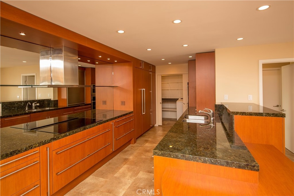 Location! Location! Location! View! view! view! You won't believe what you can see from the balcony of this remodeled and upgraded condo- a 180 degree view of the ocean and that is just the beginning. Below you lies the beautiful pool and amenities of the Versailles. The kitchen is a cook's delight with all Siematic cabinetry, custom drawer inserts, self closing drawers, an oversize appliance garage, built-in large refrigerator, a 5 burner range, granite countertops, incredible storage, an interior laundry room (unusual at the Versailles). The open floor plan allows views from almost everywhere. A fireplace in the living room is a nice addition to a functional living space.All on one floor with an elevator to all levels and 2 parking spaces in the secured garage with extra storage. This is a home for all ages and is a rare opportunity at the Versailles. Don't miss it.