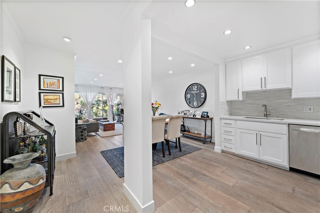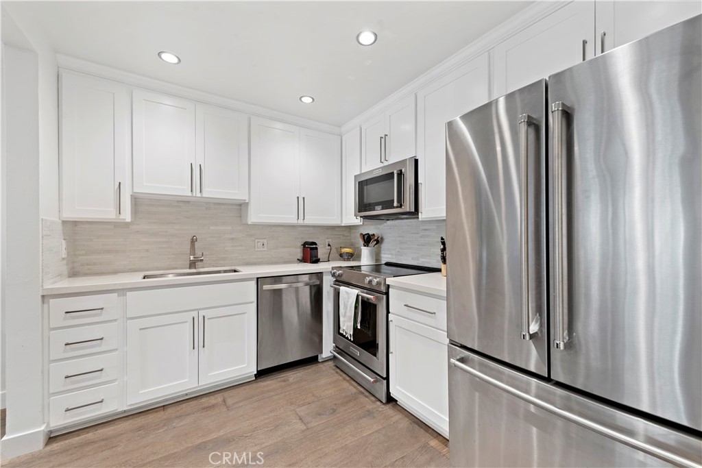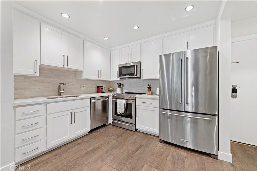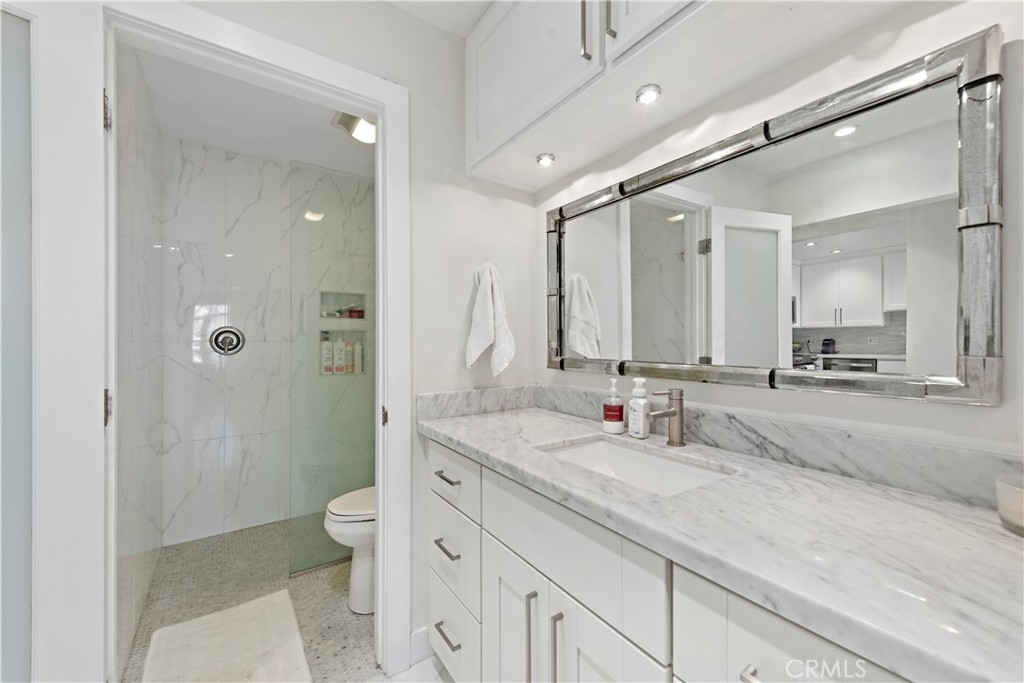 Located in the highly sought after complex of "Versailles on the Bluffs at Newport”, Enjoy a desirable resort-like lifestyle from this Amazing and move-in-ready 1 bedroom 1 bath condo. Highly upgraded throughout with engineered wide plank floors, smooth ceilings, crown molding, designer paint, stylish recessed LED lighting throughout, and a scenic view of the immaculately manicured grounds off the balcony, which is a great spot to BBQ and relax. The dream kitchen has beautiful quartz countertops, new shaker style cabinetry with tile back-splash, an oversized SS sink with professional grade Kitchenaid stainless steel appliances. The bathroom renovations include a new vanity with marble top wall-to-ceiling tile, walk in curbless shower and glass partition. Plenty of storage with a full size front entry closet and California style closet organizers, shoe cabinet and additional storage above the vanity in the walk thru closet. This home has it all with low HOA dues that include water, gas, trash, and deeded parking in a safe parking garage. Enjoy a short stroll to the Balboa Peninsula that offers a world-class beach, a variety of restaurants, bars, and eateries, and the best nightlife in SoCal. You're also close to Trader Joe's, Fashion Island, Orange County Fairgrounds, John Wayne Airport, with easy access to the 55 freeway and PCH.