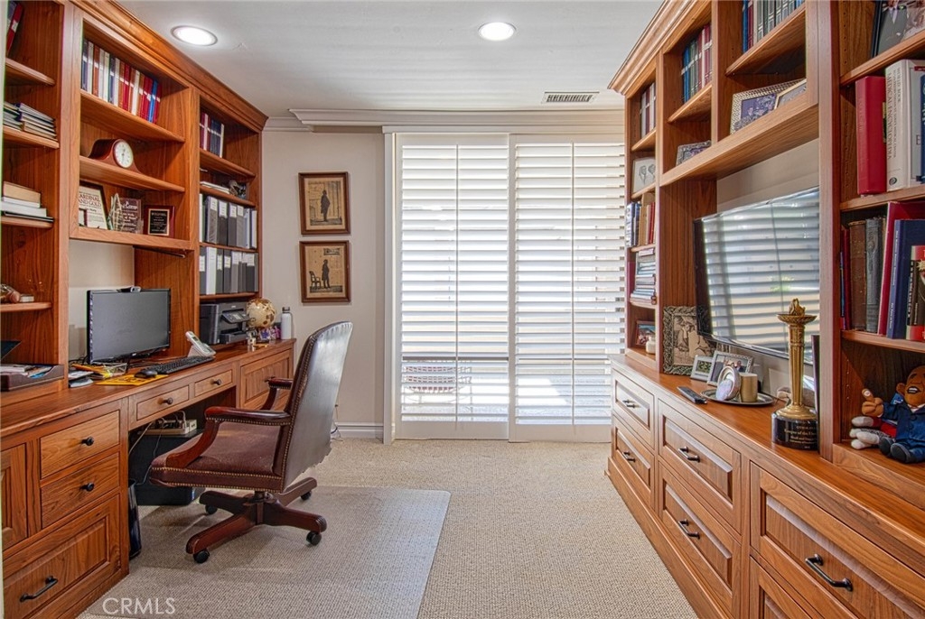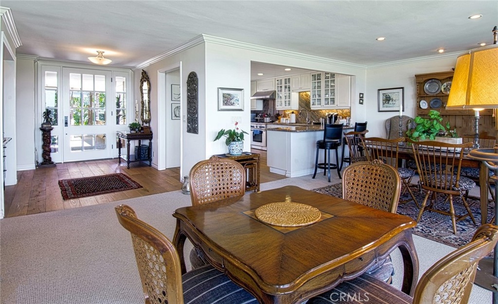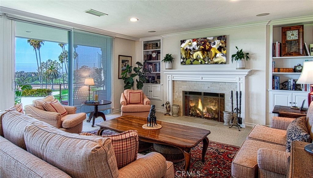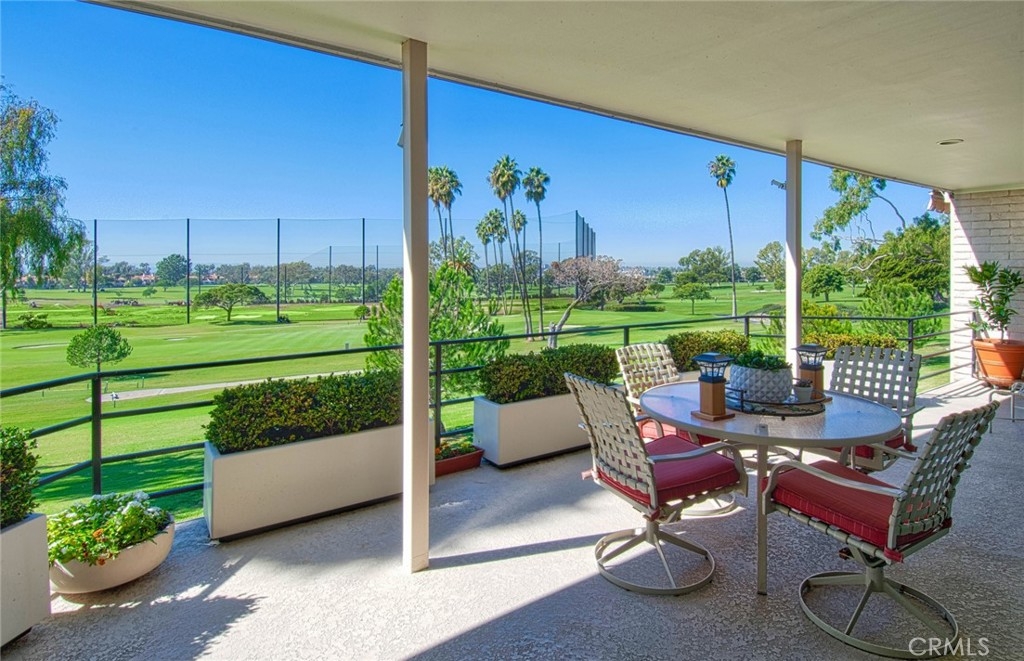 Located within the private guard-gated community of Granville, this property is truly a rare opportunity in today's marketplace. Upon entering the recently renovated upper-level property, one is met with wide-plank wood flooring and a strong sense of volume. Floor-to-ceiling windows in the living and dining rooms open to a large covered outdoor entertaining area with panoramic views of the Newport Beach Country Club’s gorgeous 9th fairway and Catalina Island. The highly upgraded kitchen offers slab countertops, custom cabinetry, as well as stainless steel appliances. The open floor plan complete with fireplace gives the single-story property a feeling of an abundance of space and light. Off the wide hallway is the large secondary bedroom, separate laundry room, and remodeled bathroom with a glass-enclosed shower. Enter the master suite through the large sitting area/office to find a spacious natural light-filled room with ample closet space that includes custom organization. The renovated master bathroom offers dual sinks and a large walk-in shower with designer tile. Other upgrades and amenities include recessed lighting, custom window coverings, and the lushly landscaped community pool and spa area that also brings a large clubhouse ideal for sizable gatherings. Truly a gem in Newport Beach, Granville is a secluded guard-gated private community ideally located and always sought after by many to call home.