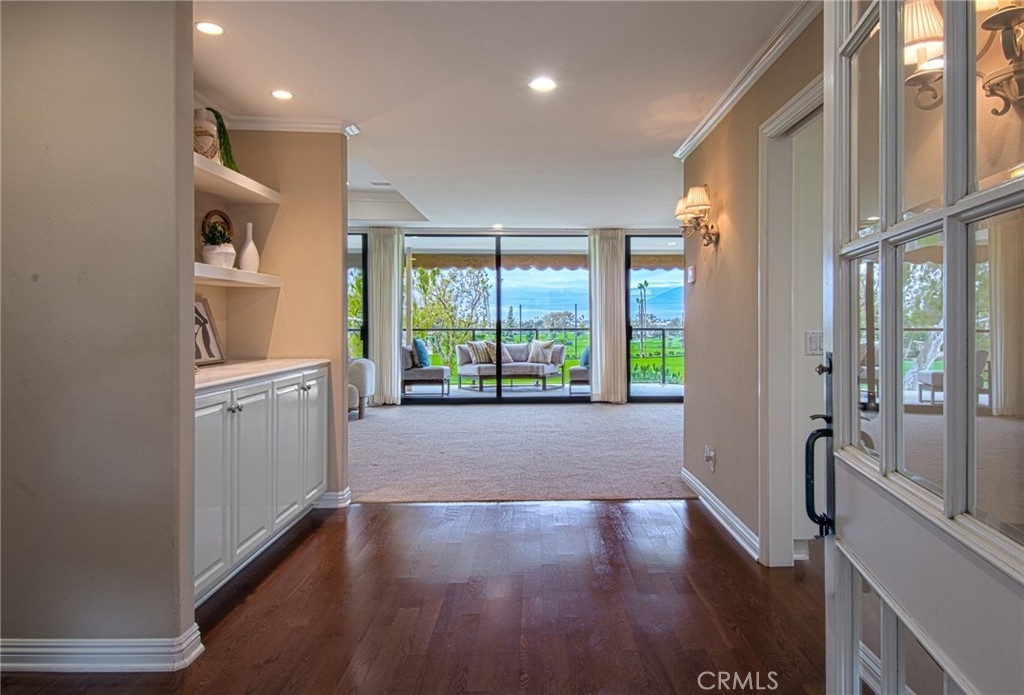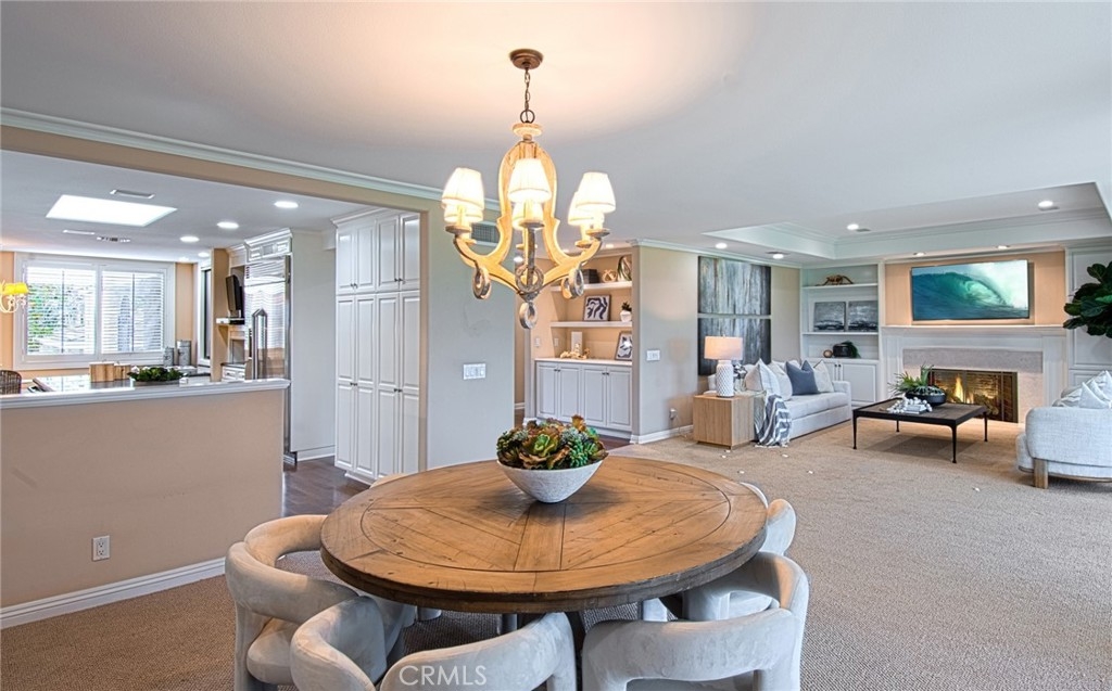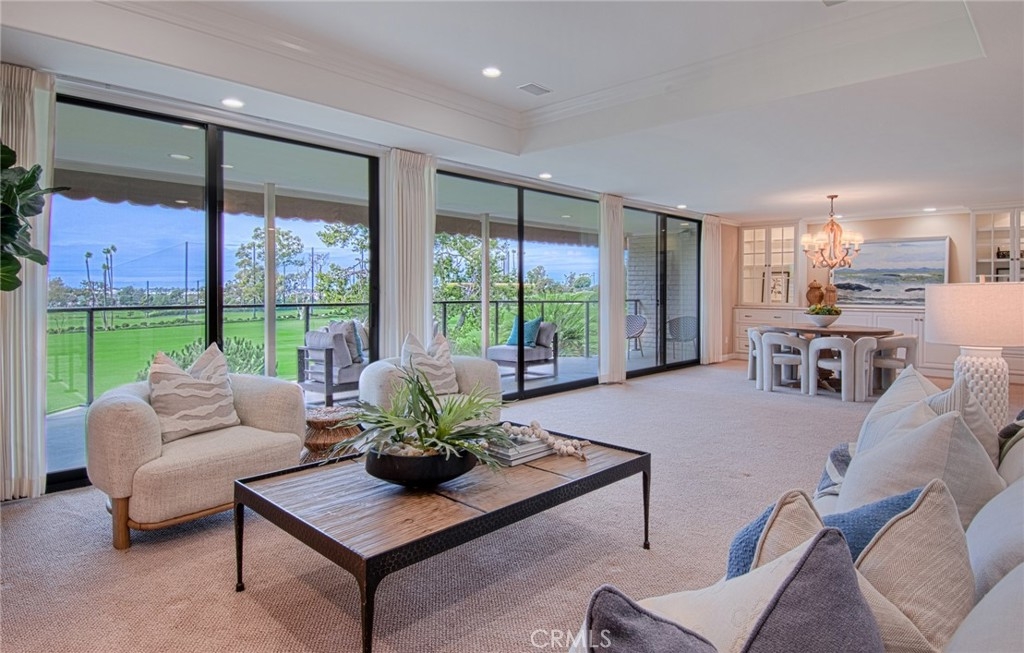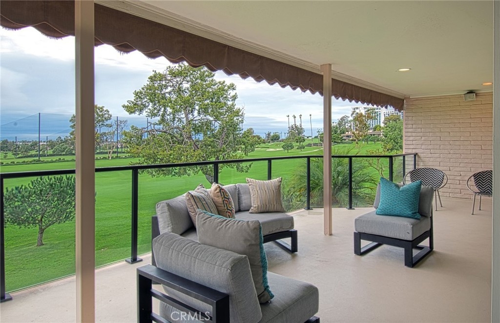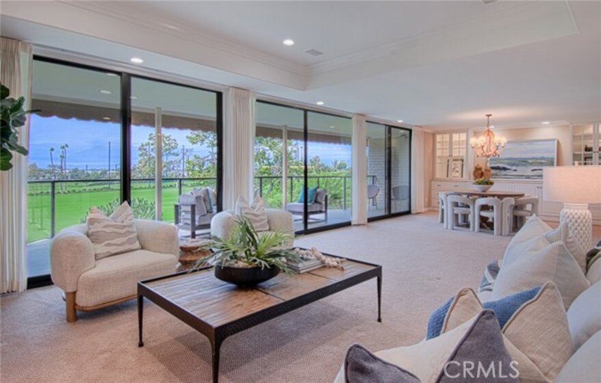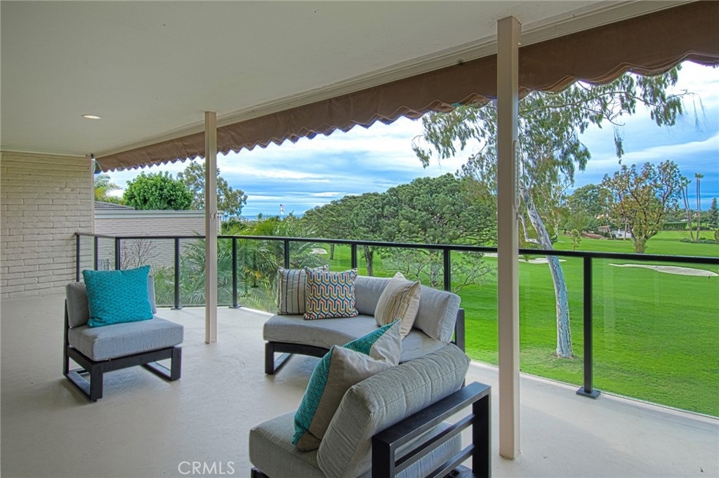 Completely and thoughtfully redesigned, this exceptional upper-level residence presents a floor plan rarely found within the private, guard-gated community of Granville. The home offers an ideal balance of elegance and functionality, enhanced by sweeping views of Catalina Island and the 9th fairway of Newport Beach Country Club. Expanded to embrace an open-concept layout, the residence features a spacious, light-filled kitchen appointed with stainless steel appliances, a large center island, and abundant custom cabinetry. An inviting breakfast area with built-in seating further complements the space, making it as practical as it is welcoming. The great room is framed by a dramatic wall of glass, capturing serene vistas of the golf course and ocean beyond. Adjacent to this space is a well-proportioned outdoor entertaining area, ideal for both everyday relaxation and intimate gatherings. Throughout the home, thoughtful design is evident. The gracious primary suite includes a dedicated office with custom built-in cabinetry, a generous walk-in closet, and a spa-inspired bathroom featuring a separate jetted soaking tub and walk-in shower. A sizable secondary bedroom with a coffered ceiling and tastefully finished en-suite bath, along with a separate laundry room, complete the interior. A true hidden gem, Granville is ideally located just moments below the world-class shopping and dining of Fashion Island. The community offers beautifully maintained grounds and resort-style amenities, including a pool and spa, outdoor cooking and dining areas, and a clubhouse available for larger gatherings.