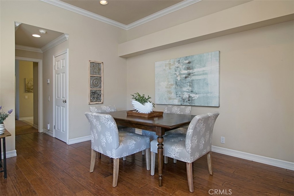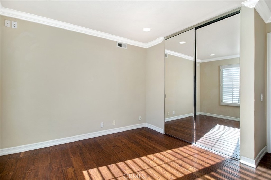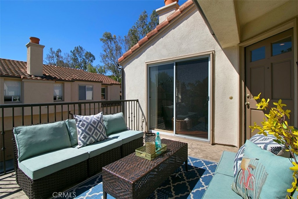 Beautiful and upgraded, this 2 bed 1 bath carriage unit condo with an extra large balcony/patio is sure to please! The condo features an upgraded kitchen with lots of cabinet space, gorgeous engineered hardwood floors, crown moldings, an extra large spa grade travertine shower (no tub) and generous dual sink vanity with stone counters. The master bedroom closet is fitted with built-in drawers, and the secondary bedroom also has a large closet with built ins. Inside laundry with stacked washer and dryer is included. The one car garage is conveniently located directly below the living space. Exceptional community pool and spa area (no gym or clubhouse). Very close to Bonita Creek Park and the Newport Upper Back Bay. Less than 10 minutes to drive to the beach. Come see this great condo before it's gone!