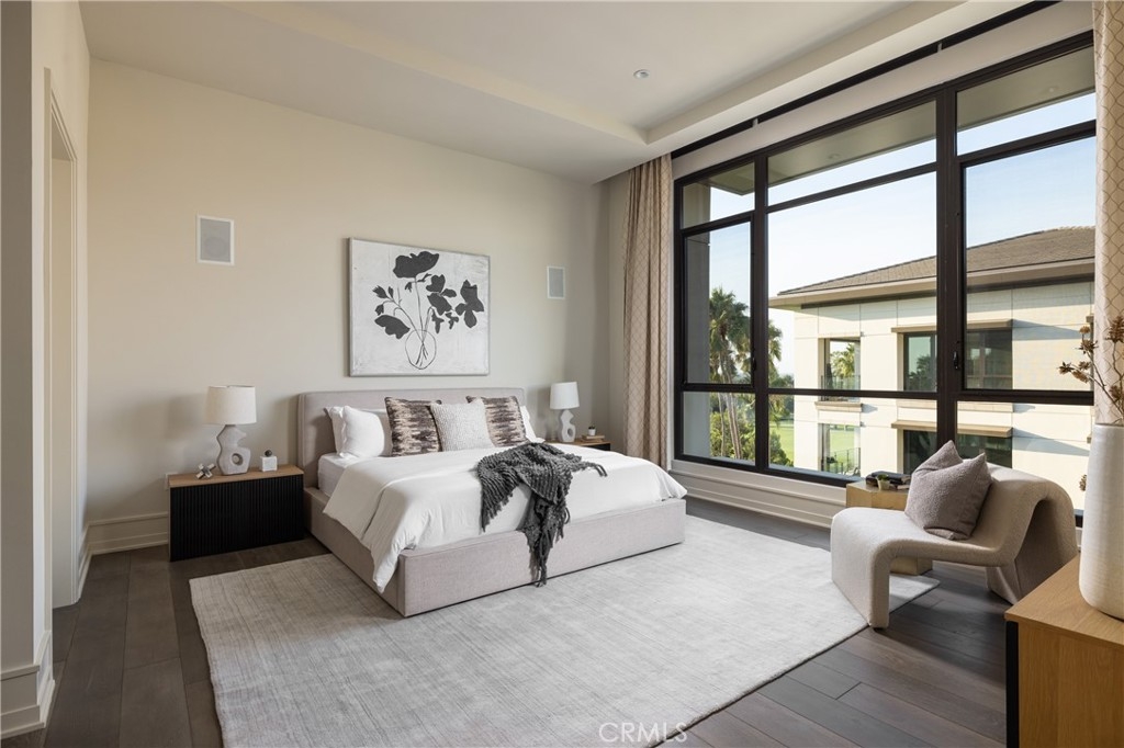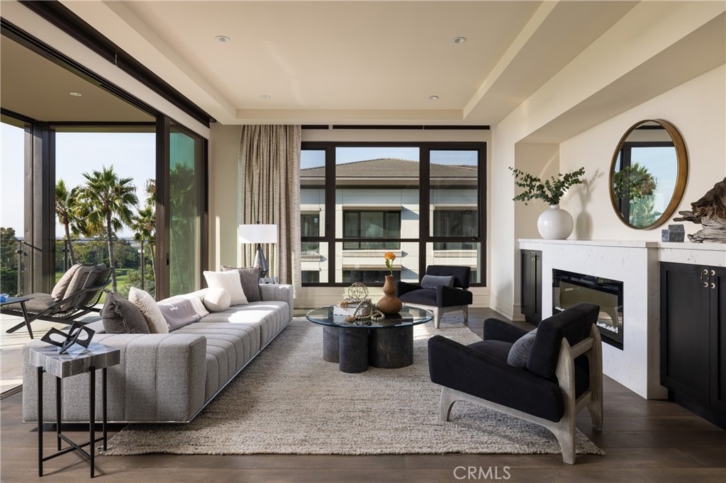 A rare opportunity for a top floor, penthouse unit at the prestigious Meridian, this immaculate contemporary single-story residence offers breathtaking views of the Pacific Ocean and the Newport Beach Country Club golf course. Ideally situated just moments from Fashion Island and Corona del Mar, this home spans approximately 2,700 square feet of luxurious living space. It includes two opulent bedrooms, an office/flex room, and three full baths. The chef's kitchen is equipped with top-tier Wolf and Sub-Zero appliances, a walk-in pantry, wine refrigerator, and a reverse osmosis water system. Throughout the home, you'll find White Oak floors, a spacious covered terrace, Lutron lighting, Fleetwood sliding glass doors, motorized shades, Surround Sound, a storage unit, and two side-by-side subterranean parking spaces with direct elevator access. The Meridian epitomizes coastal luxury living with 5-star amenities, including 24-hour concierge service, a state-of-the-art fitness center and yoga studio, a club room with a gourmet kitchen, a resort-style pool and spa, and a beautifully landscaped BBQ area. Enjoy unmatched convenience, with the finest restaurants, shopping, Pendry Hotel, Balboa Island, and pristine beaches all within easy reach.