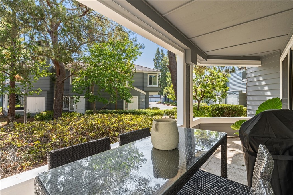 Newport Beach living at its finest in this stunning remodeled, single-story townhome in the private, gated community of Bayridge! Beauty and convenience come together in this quiet and secluded end-unit surrounded by lush landscape and just minutes away from award winning schools, Back Bay hiking/cycling trails, UCI, JW Airport, CDM beaches, and the fine dining/shopping of Balboa & Fashion Island. Enter through the living room into this bright, light open floor plan with 9’ foot ceilings, 6’ baseboards, new laminate flooring, a cozy fireplace, expansive windows and a patio door that creates a spacious and inviting atmosphere that opens to an outside covered deck in a serene setting - perfect for dining alfresco and entertaining. The remodeled gourmet kitchen is equipped with black granite counters, stainless steel appliances, rich wood cabinets, storage space, a breakfast bar and travertine floor tiling that leads into a separate indoor laundry room. Master bedroom features dual mirrored closets and an en-suite bathroom with double vanity granite counters, travertine tiling in the double sized shower. The secondary bedroom is generously sized and adjacent to the full hall bathroom. Additional features include an attached one-car garage, plus unattached additional one-car garage, new windows, new lighting and paint. Community amenities include a sparkling pool and spa that are just steps away.