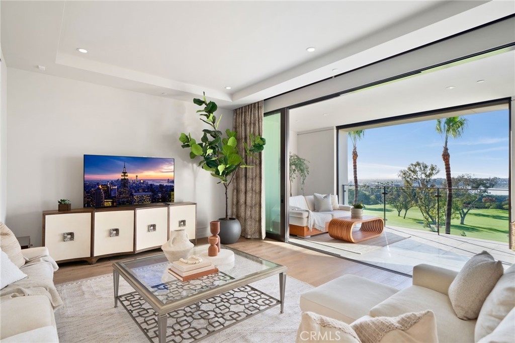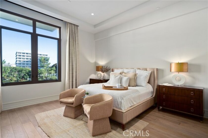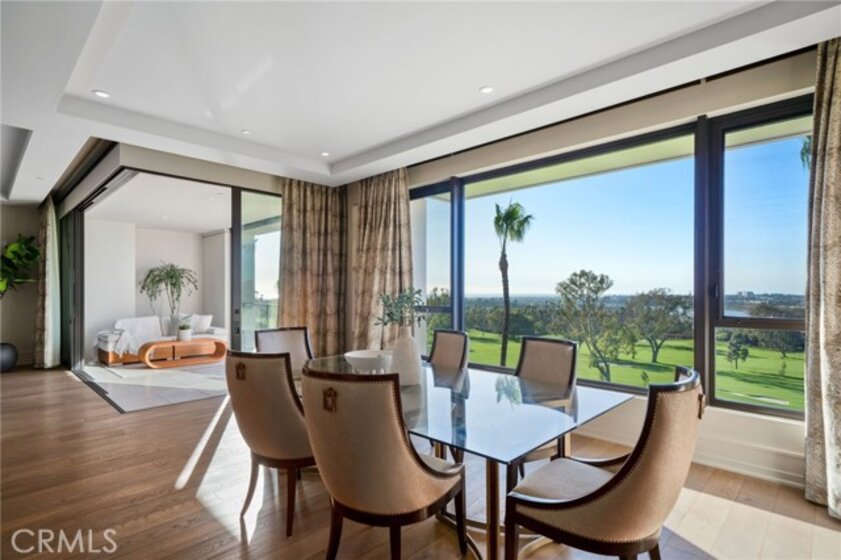 This exceptional third-level penthouse residence represents one of the most desirable opportunities to come to market at The Meridian. Designed as a two-bedroom plus office, the home also features generous walk-in storage—a rare and valuable amenity in luxury high-rise living. Positioned on the top residential level, the residence benefits from significantly higher ceilings, creating a dramatic sense of volume and natural light not found on lower floors. From this elevated vantage point, unobstructed views span the Newport Beach Country Club golf course, extending beyond Newport Harbor to the Pacific Ocean and Catalina Island. Equally compelling is the home’s premier placement within the community, with no buildings in front or behind, offering both privacy and expansive openness—an uncommon combination even within The Meridian. The interior is defined by timeless sophistication, featuring wide-plank white oak flooring and a beautifully appointed kitchen with custom white oak cabinetry. The space is further elevated by top-tier appliances, including Wolf cooking appliances, a Sub-Zero refrigerator, and a dedicated wine refrigerator—a clear reflection of the home’s elevated caliber. This is a residence where location, elevation, views, and craftsmanship align, making it one of the most compelling offerings at The Meridian—designed for those who value refinement, privacy, and the very best of Newport Beach living.