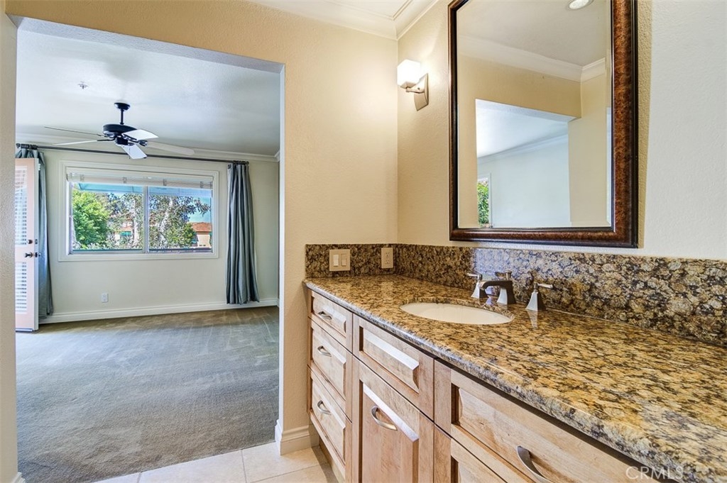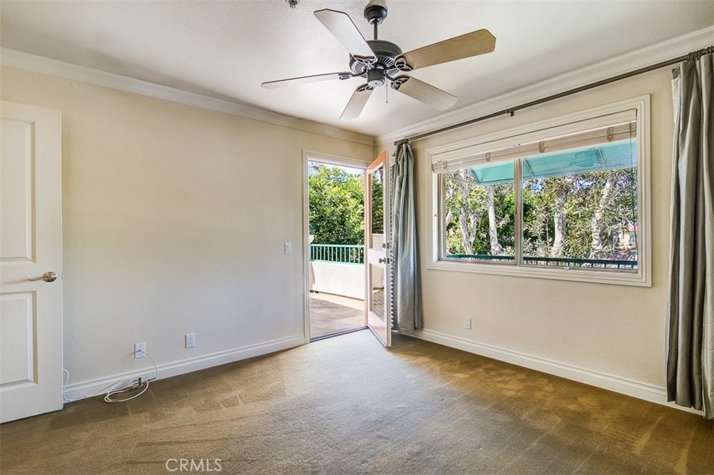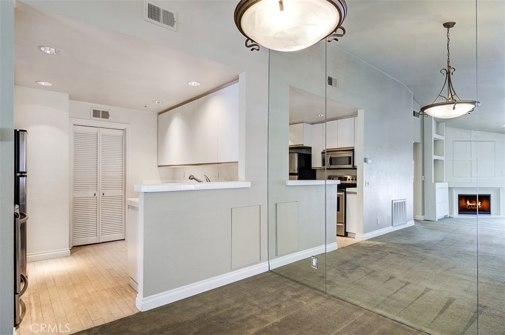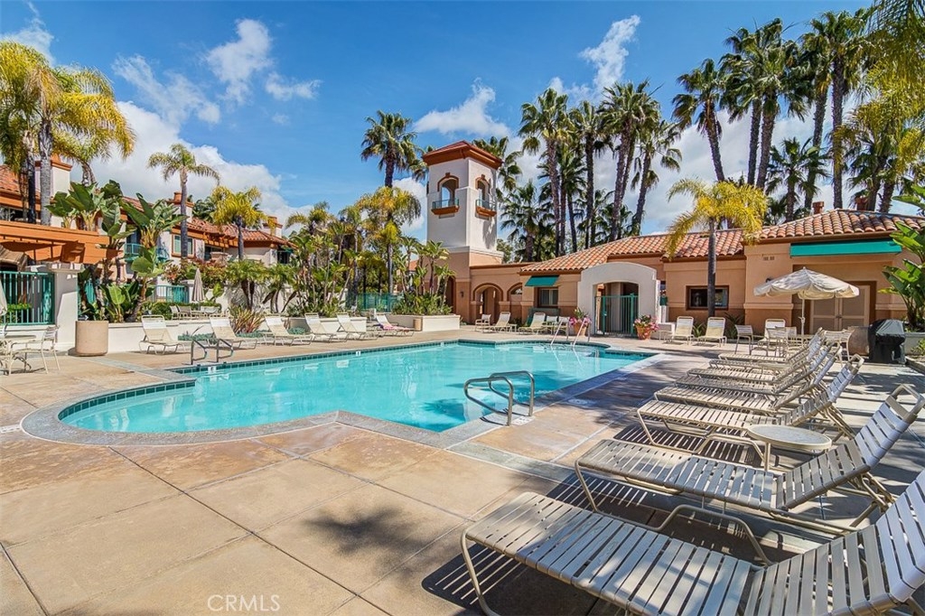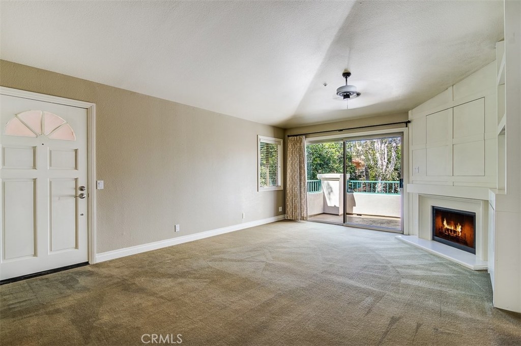 Nestled in a beautiful gated community close to Balboa Island, Fashion Island and Corona del Mar, this upstairs, corner unit welcomes you into a large living room with cozy fireplace, and a balcony looking out onto a lush canopy of greenery. The spacious kitchen has plenty of room for food prep and a counter-height breakfast bar that opens to a roomy dining space. An easily accessible, interior laundry room with stackable appliances and extra storage is just off the kitchen. The main living spaces have high ceilings and large, picture windows that allow in ample natural light. Adjacent to the living room is a sunny primary bedroom, with balcony access, that provides a private oasis at the end of the day. The primray suite has an upgraded bathroom featuring large vanity area with granite counter tops, remodeled shower and spacious walk-in closet. Neutral carpet was installed throughout the home in early 2019, and new central air will keep you cool during those warm summer months. This unit includes a 1-car, detached garage with overhead storage, plus one additional parking space for a registered vehicle. The upscale Villa Point community offers two heated swimming pools year-round and two fitness centers. There are picnic tables and gas grills available outdoors as well. With no interior steps, and a quiet location close to the pool, mailboxes and your private garage, this home is a must-see!