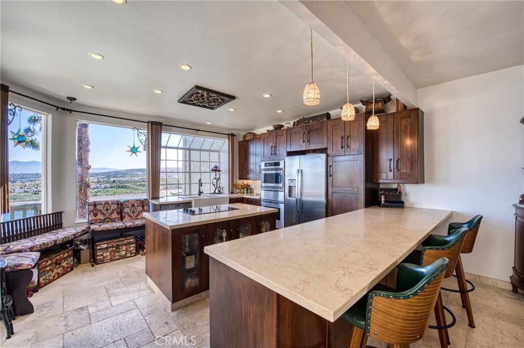Located in the guard-gated community of Harbor Ridge, 20 Coventry has unparalleled views of the reservoir, mountains and city lights at night. Spanning over 2,480 square feet, this home features three bedrooms, two bathrooms, a powder room, and a flex space which can function as both, a work-from-home office or a second family room. Downstairs master bedroom. The entrance is comprised of a private, meticulously landscaped courtyard with a fountain. The main level is highlighted by a double-height living room with walls of windows, giving 20 Coventry a bright and airy feeling. The living room flows into the dining area and the kitchen, emphasizing the open floor plan. A large deck with plenty of room to entertain awaits those looking for quintessential indoor-outdoor living. The main-level primary bedroom has French doors to the courtyard as well as large walk-in closet and ensuite bathroom. Upstairs, a loft space awaits, along with two secondary bedrooms - one with a staircase with direct access to the outside. Two more decks complete the upper level. Upgrades abound throughout this home, from updated cabinetry to Indonesian marble flooring and custom imported doors. Harbor Ridge is a community as popular for its amenities, as it is for views and location. Guard-gated around the clock, with multiple pools and tennis courts, it is a fantastic place to call home. Minutes away from the beach, Fashion Island, world-class golfing and John Wayne Airport.