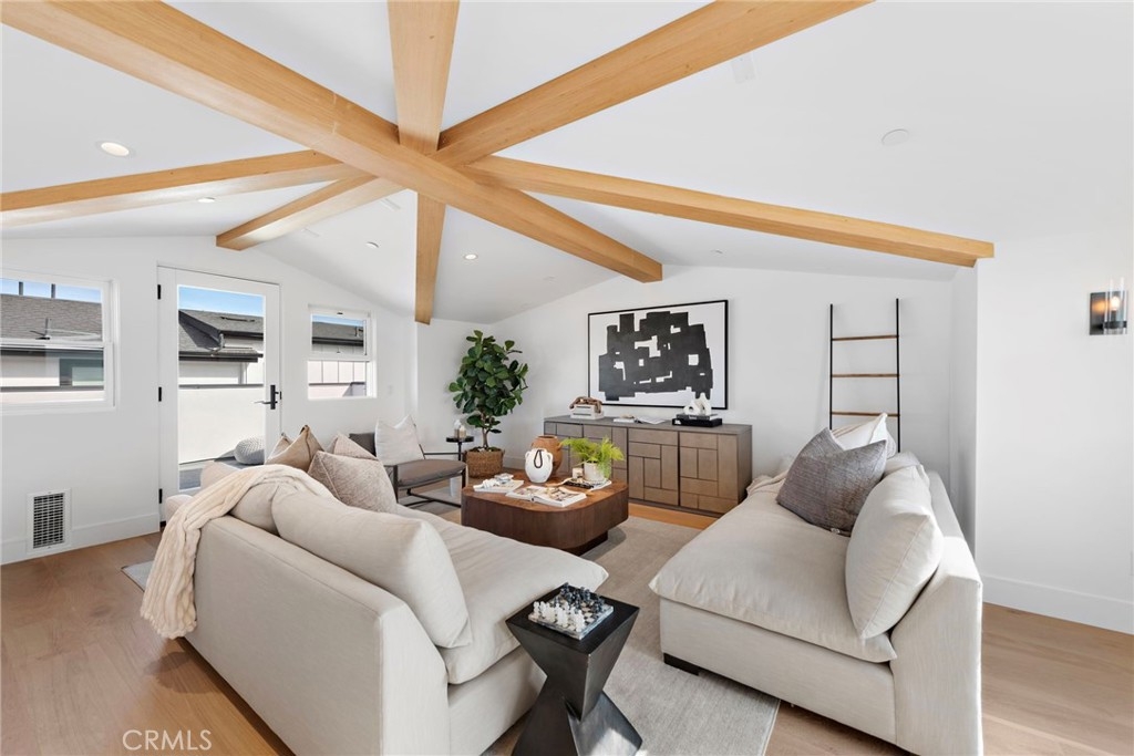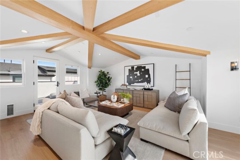 Masterfully designed and built, the Back Bay Townhomes are a collection of extraordinary modern-style homes that boasts an array of features. Primary level hosts the open concept living area that si outfitted with gorgeous wood beams and exquisite finishes. Luxurious European flooring is spread through the entirety of of the home. The gourmet kitchen holds marble countertops, vast waterfall style island, custom cabinetry, and best-in-class appliances, including Wolf range, Sub-Zero refrigerator, and more. An elegant primary suite with beautifully designed bathroom and walk-in closet constructs the third level along with the two remaining bedrooms. The uppermost level consists of a bonus room perfect for any use. Two rooftop decks add for an enhanced indoor/ outdoor flow, whilst providing views. Additional highlights include tremendous location, two car garage, main level area perfect for home office, stylish hardware throughout, and many more. Completely brand new, this home allows for the comfortable lifestyle of Newport Beach, al while boasting the dazzling aesthetics of modern architecture.