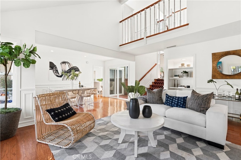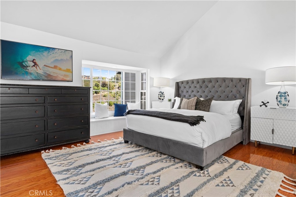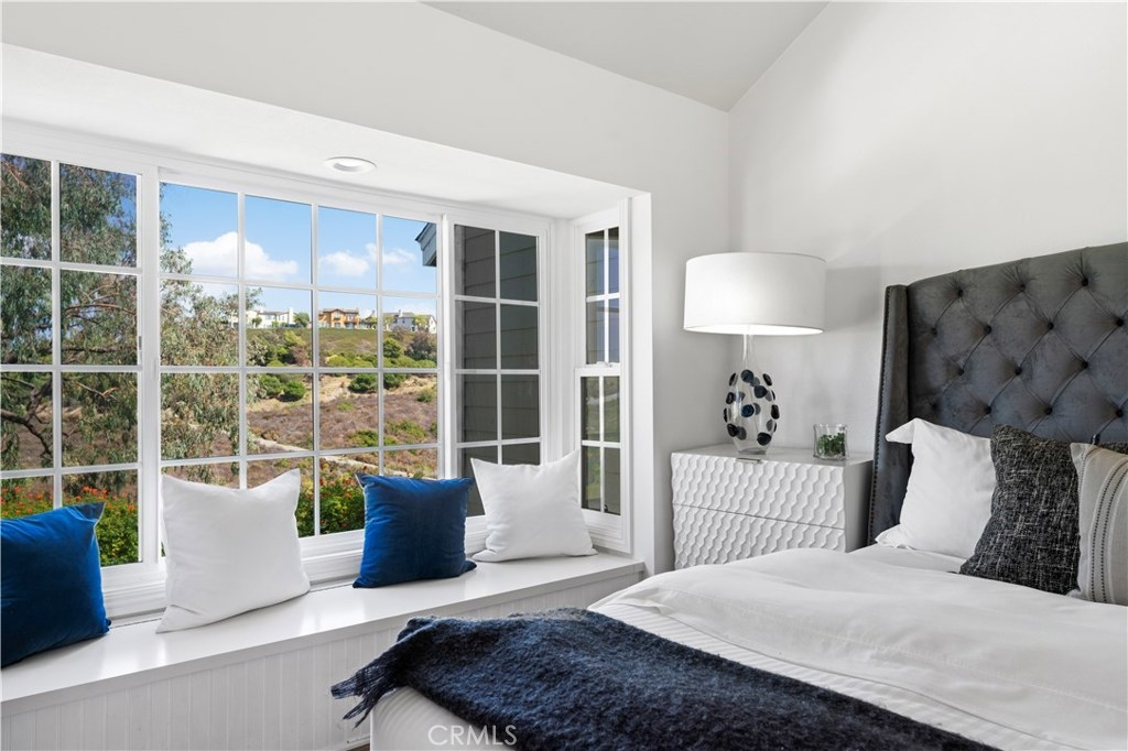 One of the best locations within Harbor View Knoll, offering a private serene setting, a large patio for entertaining, and expansive views of the hillside and vast open space beyond. Upon entering through the rose-trellised walkway you will appreciate the quality and detail throughout this updated home. The remodeled kitchen features a bay window overlooking the vistas, stainless steel appliances, marble countertops and an eat-in breakfast area. The oversized master offers built-in closets, high ceilings, wood floors and an inviting window seat. The remodeled master bath has a large walk-in shower, dual sinks and marble wainscoting. The secondary bedroom includes a private deck. Other amenities include dual-paned windows, hardwood floors throughout, wainscoting through the living room and stairwell and a large garage with built-in storage. The Anderson Elementary and Corona Del Mar Middle and High Schools are top-rated in the area. Ideal location within walking distance to shopping and dining. The community association offers a pool, spa, BBQ area and tennis court.