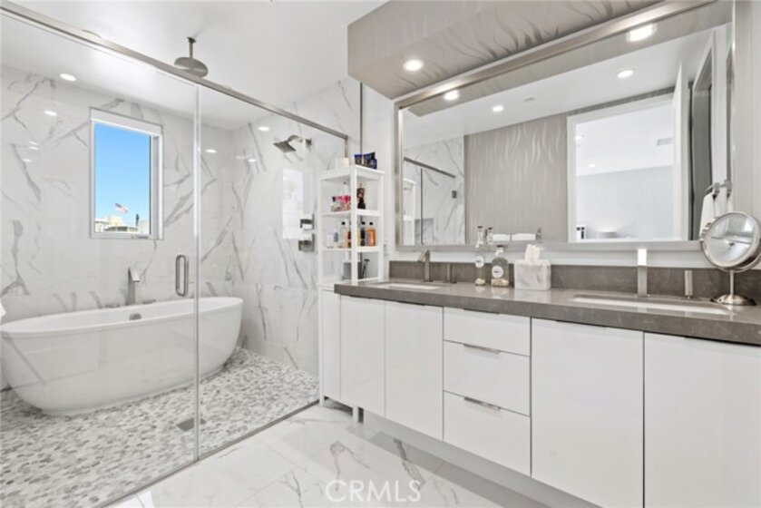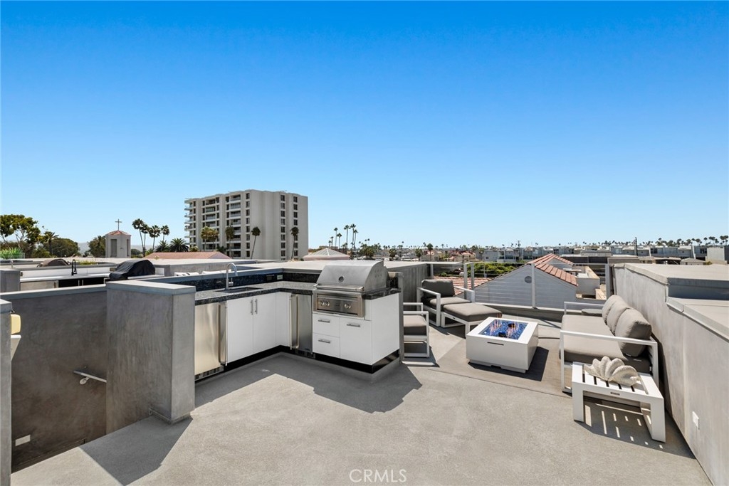 Southern California Coastal Living at its Best. Newer luxury townhome with 2 bedrooms plus loft/office in a quiet location in the stylish Lido Villas development of Newport Beach. This contemporary townhome offers gorgeous designer finishes throughout including hardwood floors, stone countertops, custom built-ins, and stylish wallpaper. Featuring motorized window treatments, updated security system, tri-zone HVAC, and an incredible oversized rooftop deck to enjoy spectacular and panoramic sunset, ocean, bay, and city light views. A guest bedroom and full bathroom, a full-length front patio, along with an attached two-car garage with epoxy flooring are located on the entry level of this modern smart home. On the second level of the home you will find double high ceilings, floor-to-ceiling windows, open-concept living, front balcony, and a bright stylish kitchen adjacent to the dining area. The gourmet kitchen showcases high gloss cabinets, modern Italian countertops, extra-large sink with designer faucet, a huge island with barstool seating and chef-inspired appliances including Thermador. The third level is complete with an oversized master retreat, walk-in closet, large master bathroom with soaking tub within the enclosed shower area, dual sink vanity, laundry room, and a sophisticated loft/office space with entertainment bar area. High ceilings and tall windows allow an abundance of natural light to flow through in both the second and third levels. The rooftop level of the home includes an outdoor kitchen with stone countertops, built-in BBQ, refrigeration, ice maker, storage, full-size sink, large dining and lounge area with firepit table, and grand sundeck. The roof is also reinforced in order to support a spa in a designated area. The Lido Villas development is conveniently close to world-famous beaches, the trendy Lido Marina Village with great restaurants and boutiques on the water, the beautiful Newport Harbor, the upscale Lido House Hotel, prestigious Lido Isle, the Balboa Peninsula, and Fashion Island Shopping Center. All furniture within the home and rooftop, all televisions, washer / dryer, and outdoor BBQ are included.