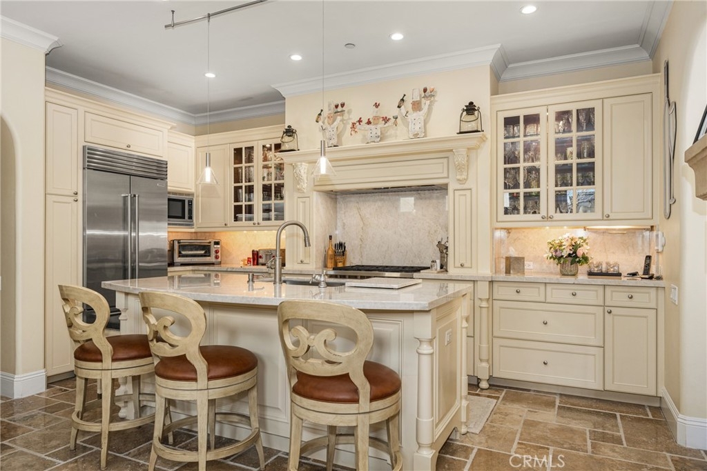 Located in sought-after Newport Heights, this luxurious Tuscan-style townhome offers an exceptional blend of elegance, warmth, and upscale coastal living. From the gated garden entry to the beautiful Mediterranean exterior, the home makes an immediate impression with timeless architectural character and manicured surroundings. Inside, a spacious floor plan unfolds with stone flooring, arched openings, recessed lighting, crown molding, and a stunning wrought iron staircase that anchors the interior with dramatic style. The formal living area features a beautiful stone fireplace, custom niches, and abundant natural light, flowing seamlessly into the dining space and gourmet kitchen. Designed for both entertaining and everyday living, the kitchen showcases expansive stone counters, custom cabinetry, glass display uppers, a large center island with bar seating, pendant lighting, and premium stainless steel appliances, including a professional-style range. An adjoining family room provides additional lounge space and comfort. Upstairs, spacious bedrooms and a versatile loft-style area are complemented by a serene primary suite with plantation shutters and a spa-inspired bath featuring a soaking tub, dual vanities, and stone shower. Rich finishes, custom detailing, and thoughtfully designed living spaces carry throughout the home, while the exterior offers classic tile rooflines, lush greenery, and inviting outdoor charm. Just moments from premier shopping, dining, beaches, and freeway access, this Newport Heights residence delivers sophisticated living in one of Newport Beach’s most desirable neighborhoods.