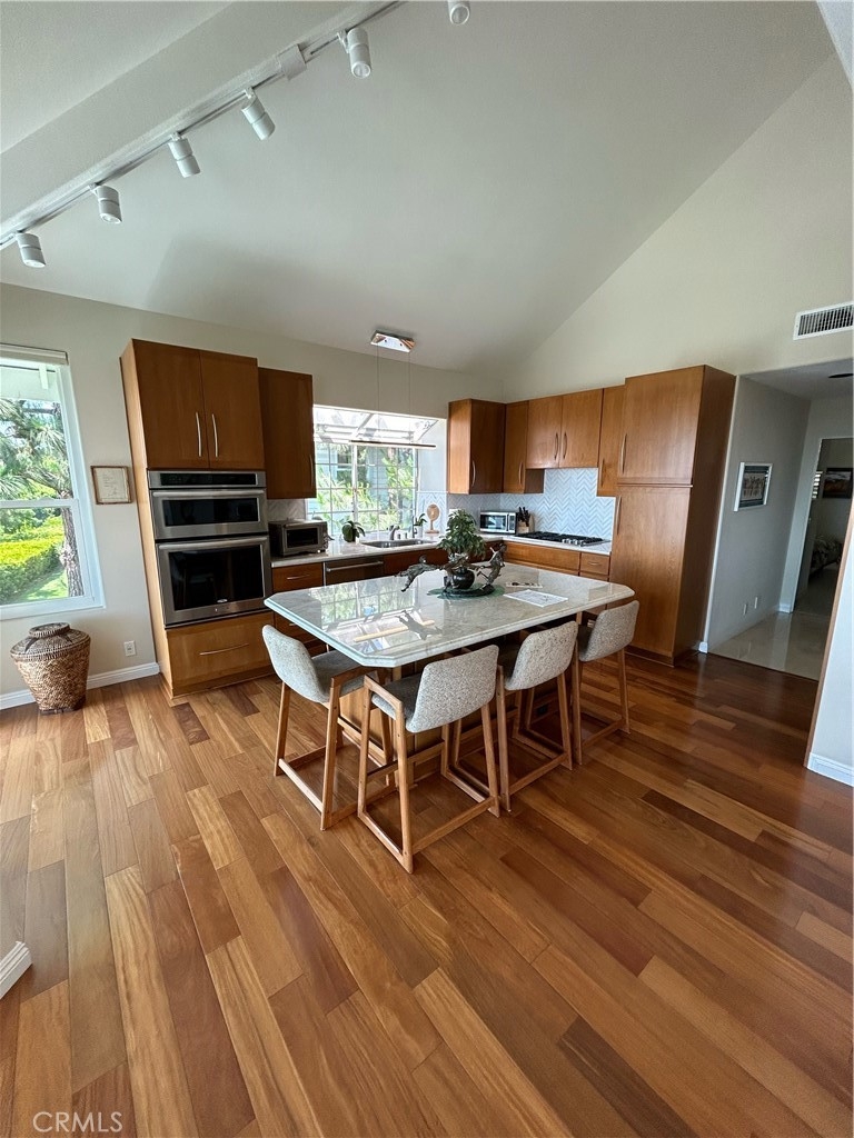 One of the best locations in the complex. This unit is one level and has magnificent views Fashion Island, Catalina to Palos Verdes. It has had a complete remodel with the kitchen opening up to the dining room and living room. These sit down views are from every room in the house with the exception of the guest suite and bath. The Fabolous Primary bathroom was taken down to the studs with top of the line fixtures. The primary bedroom includes a fireplace with all the views you could ever want. Two car attached garage with no steps, truly a one level.