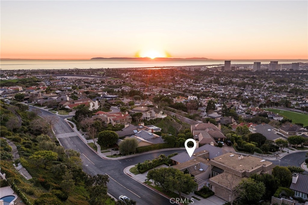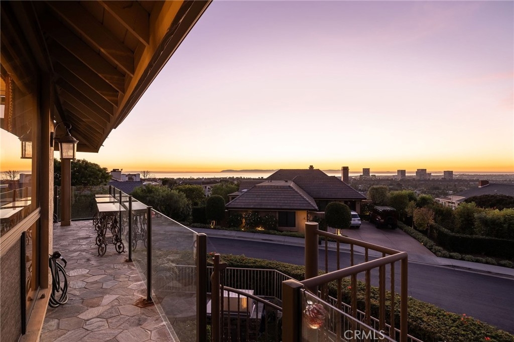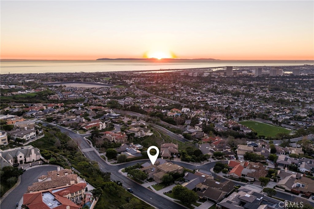 Showcasing breathtaking panoramic views of the Pacific Ocean, Catalina Island, and city lights by night, this exceptional residence represents the largest floor plan in the Harbor Ridge Estates subdivision, ideally situated on a premium corner lot within the prestigious guard-gated community of Harbor Ridge. The home features five bedrooms, with the fifth bedroom ideally suited for use as a private office, and a primary suite conveniently located on the main level, offering an ideal layout for both comfort and flexibility. Expansive windows throughout the residence frame the stunning vistas and fill the interiors with natural light. The chef’s kitchen is equipped with a built-in refrigerator and high-end Viking stove, thoughtfully designed for both everyday living and entertaining. Spacious living and dining areas flow seamlessly, maximizing functionality while highlighting the home’s elevated setting. Additional highlights include a three-car garage, generous storage, and the privacy and security that define this sought-after Newport Beach enclave. Residents enjoy close proximity to world-class beaches, harbor access, fine dining, and premier shopping. A rare opportunity to own a view-oriented home of this scale in one of Southern California’s most exclusive communities.